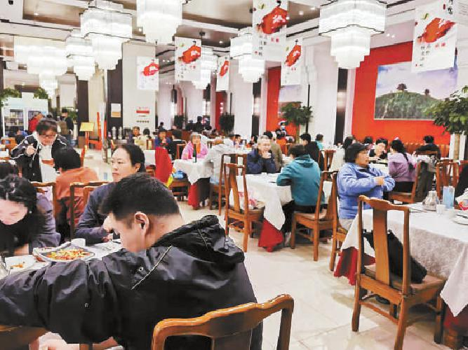 “假期的客流比平時翻了一倍,每天要接待將近3000人?!睋?jù)鼓樓馬凱餐廳經理呂永杰介紹,國慶節(jié)當天的就餐人數(shù)還要更高,其中不少都是慕名而來的外地游客。