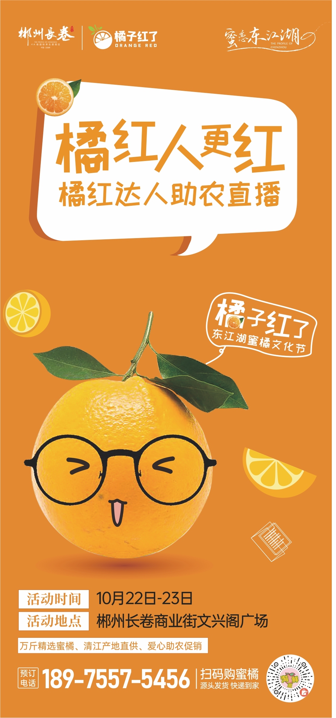為助力東江湖蜜橘產(chǎn)業(yè)發(fā)展,資興市“橘子紅了”東江湖蜜橘節(jié)將于10月22日至23日在郴州長(zhǎng)卷歷史文化商業(yè)街舉行。