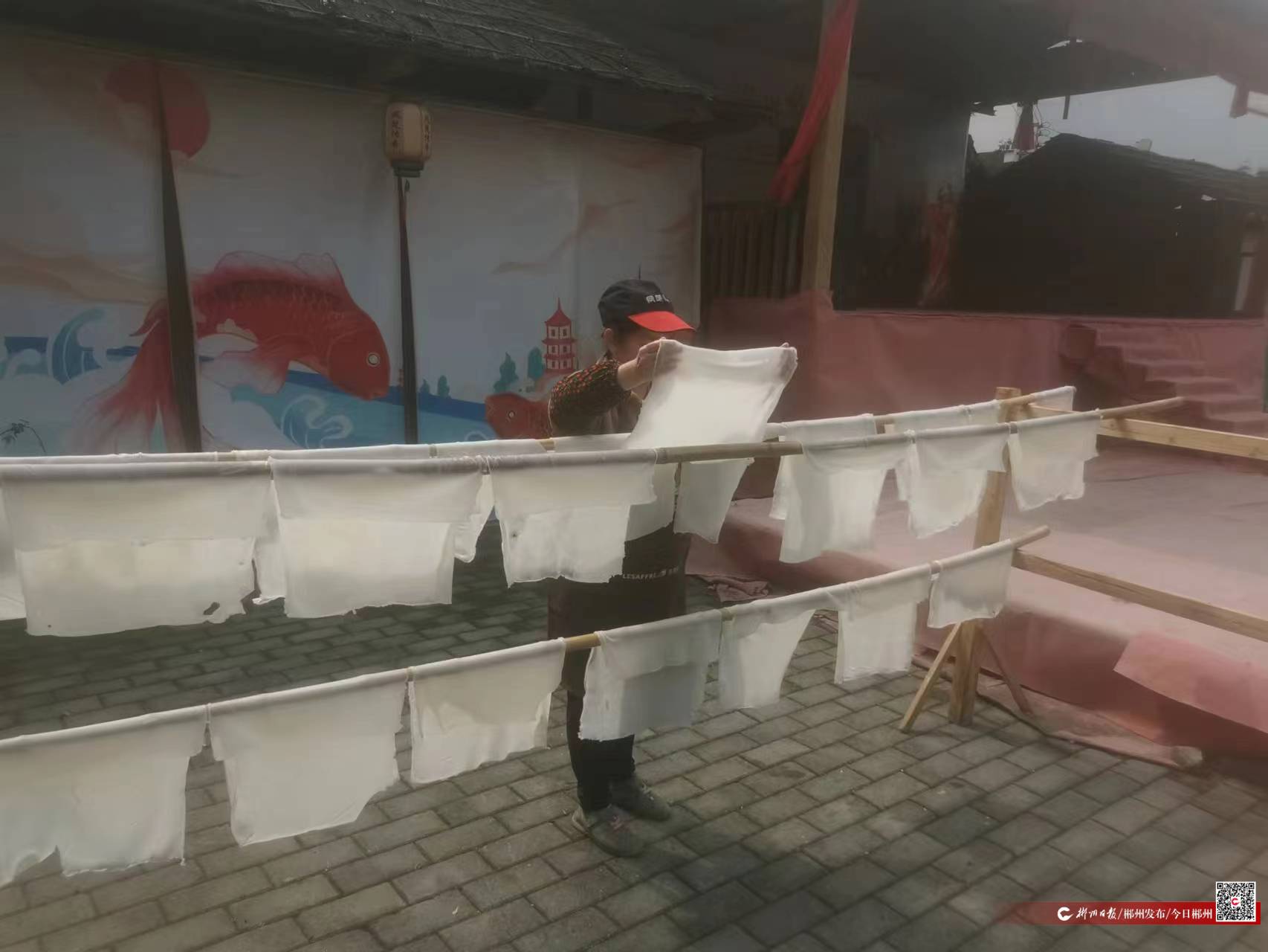 在離村部50米不到的鳳楚傳奇棲鳳渡魚粉非遺工坊,一碗魚粉喚醒了趕早的人們。