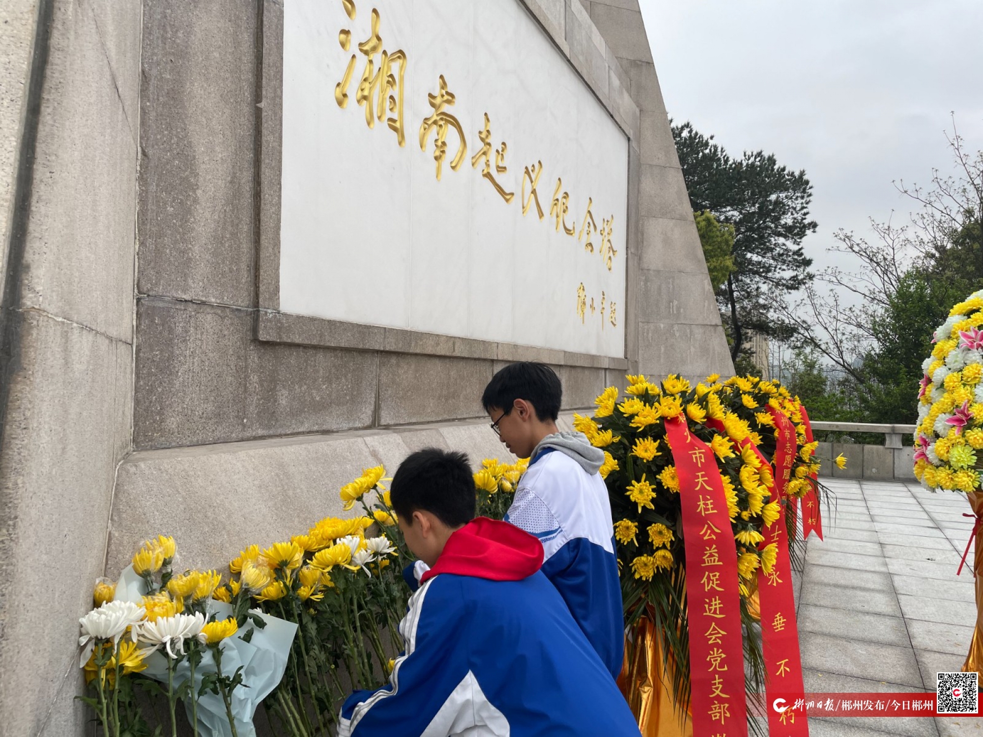活動在莊嚴(yán)的國歌聲中開始,青少年代表向烈士敬獻(xiàn)了花籃,作了獻(xiàn)詞。活動中,大家懷著崇敬的心情向烈士敬獻(xiàn)了鮮花,并在湘南起義紀(jì)念塔前行靜默禮,蘇仙中學(xué)紀(jì)檢員曹健能向孩子們講述了那段革命先烈前仆后繼、不怕犧牲的崢嶸歲月。大家一起追憶革命先烈、學(xué)習(xí)黨史,深切表達(dá)了對英烈的緬懷、敬仰之情。志愿者代表說:“我們要珍惜當(dāng)下的幸福生活,未來奮發(fā)有為,努力爭做擔(dān)當(dāng)民族復(fù)興大任的時代新人?!?/p>