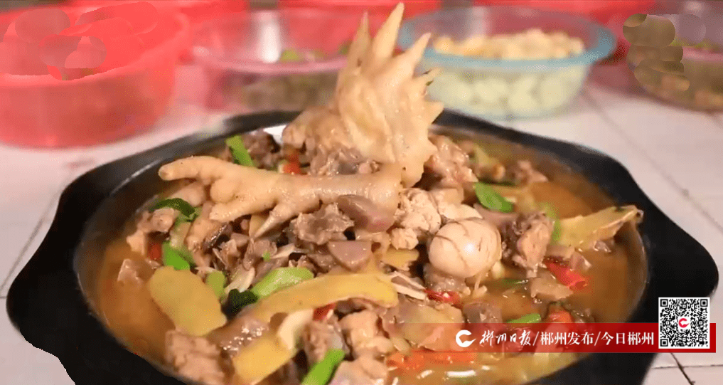 湘陰渡燒雞公是郴州市永興縣一道久負(fù)盛名的美食,由于辣味十足,肉汁鮮美,深受當(dāng)?shù)厝说南矏?,也吸引各地的游客慕名而來。一道地道的燒雞公,勾起游客的美食記憶,擦亮土特產(chǎn)品牌,助力鄉(xiāng)村振興。