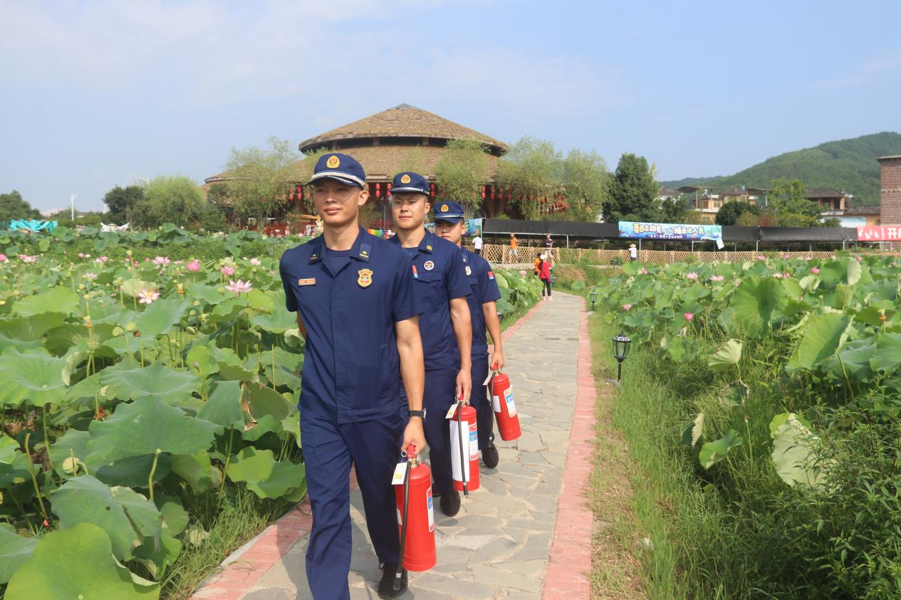“您好,消防宣傳知識了解一下.......”大隊的消防宣傳員們拿著消防傳單分區(qū)域開展宣傳,讓游客感受來自消防守護(hù)的安全感。大隊消防宣傳員采取聽、問、查的形式,重點圍繞用火、用電、用氣是否規(guī)范安全,全力配合景區(qū),加強(qiáng)景區(qū)消防安全執(zhí)勤。在荷花節(jié)現(xiàn)場,正在寫生的畫畫何正淑,平時就很崇拜消防員,當(dāng)她看到有消防員在現(xiàn)場,趕忙上前和消防員拍照合影,并提出要為他們畫一副素描。每年夏天,來土橋鎮(zhèn)金山村旅游的人絡(luò)繹不絕。進(jìn)入古村與荷花景區(qū)內(nèi)觀光游覽是每名游客必須打卡的項目之一。大隊的消防宣傳人員將消防知識送達(dá)到過往游客手中,為每名游客講解著消防安全。