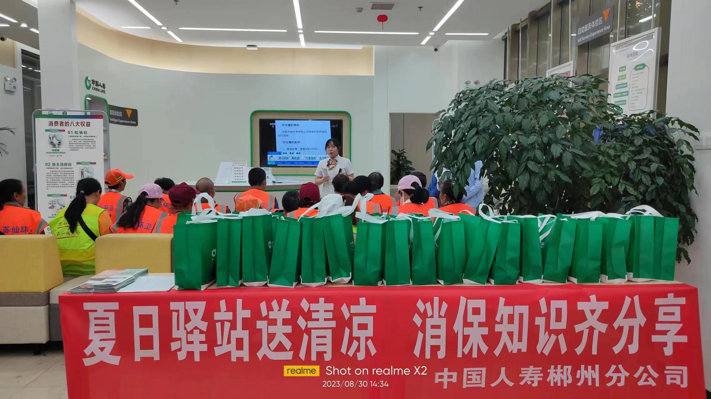 郴州日?qǐng)?bào)·郴州新聞網(wǎng)(通訊員 彭艷菊)8月30日下午,中國(guó)人壽郴州分公司開(kāi)展“夏日驛站送清涼,消保知識(shí)齊分享”活動(dòng)?;顒?dòng)共計(jì)邀請(qǐng)了20多位環(huán)衛(wèi)工人參加。