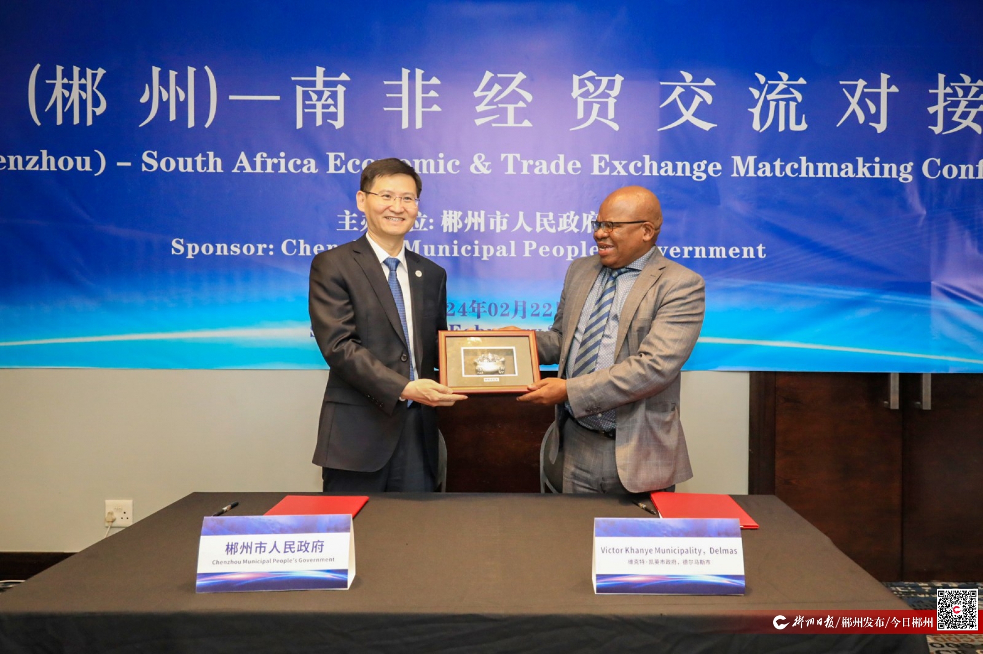 交流對接會上,闞保勇向南非友人推介郴州。他說,郴州礦產(chǎn)豐富,是聯(lián)合國教科文組織贊譽的“世界有色金屬博物館”;郴州生態(tài)優(yōu)美,是中國著力推進的國家可持續(xù)發(fā)展議程創(chuàng)新示范區(qū)之一;郴州開放包容,是湖南重點打造的中非經(jīng)貿(mào)深度合作先行區(qū)重要板塊。郴州愿與包括南非在內(nèi)的非洲朋友賡續(xù)友誼、攜手同行,共同努力消除障礙、簡化監(jiān)管,促進跨境貿(mào)易和投資流動的便利化,共同開創(chuàng)郴非經(jīng)貿(mào)深度合作新局面。
