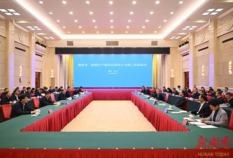 (4月13日,湖南省·新疆生產建設兵團對口支援工作座談會在長沙舉行。)