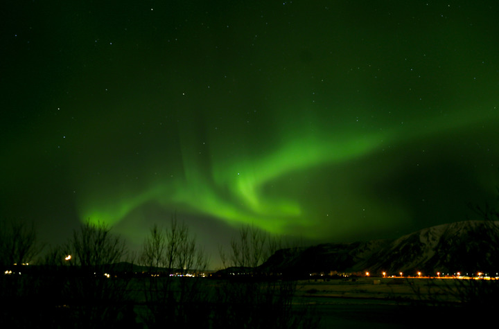 這是2月14日凌晨在冰島南部小鎮(zhèn)塞爾福斯拍攝的極光。新華社記者 李穎 攝