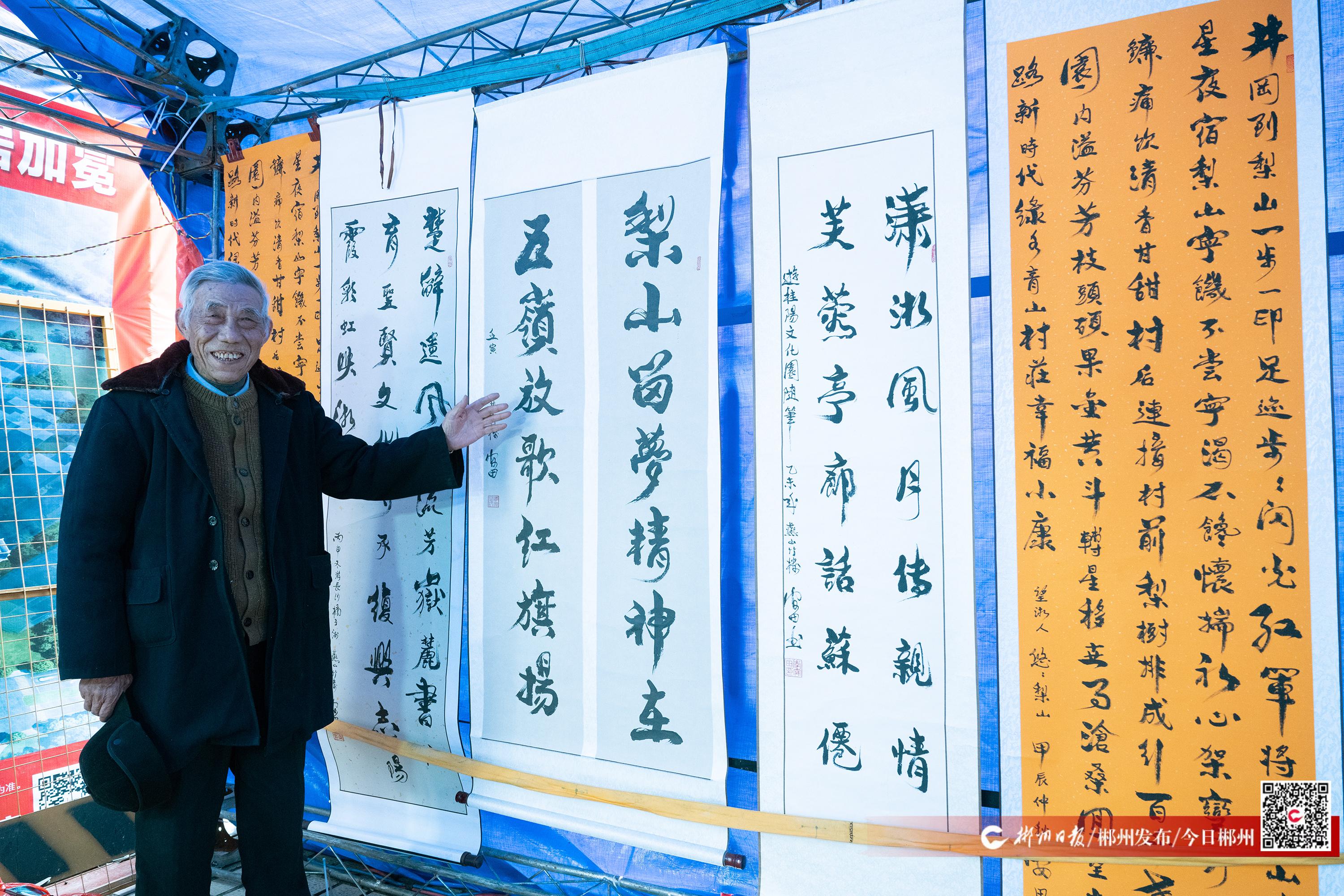 李安田是正和鎮(zhèn)朝陽村的一名講解員,義務(wù)宣講“夜宿梨山,秋毫無犯”紅色故事已超過40年。在今年工藝美術(shù)品交易會上,他將自己親擬的書法作品前來銷售,在增加收入的同時,宣講紅色故事?!袄嫔搅魤艟裨冢鍘X放歌紅旗揚?!崩畎蔡锷钋榈卣f,希望能把這段軍民魚水情深的感人故事講給更多的人聽,讓紅軍夜宿梨山的故事代代相傳。