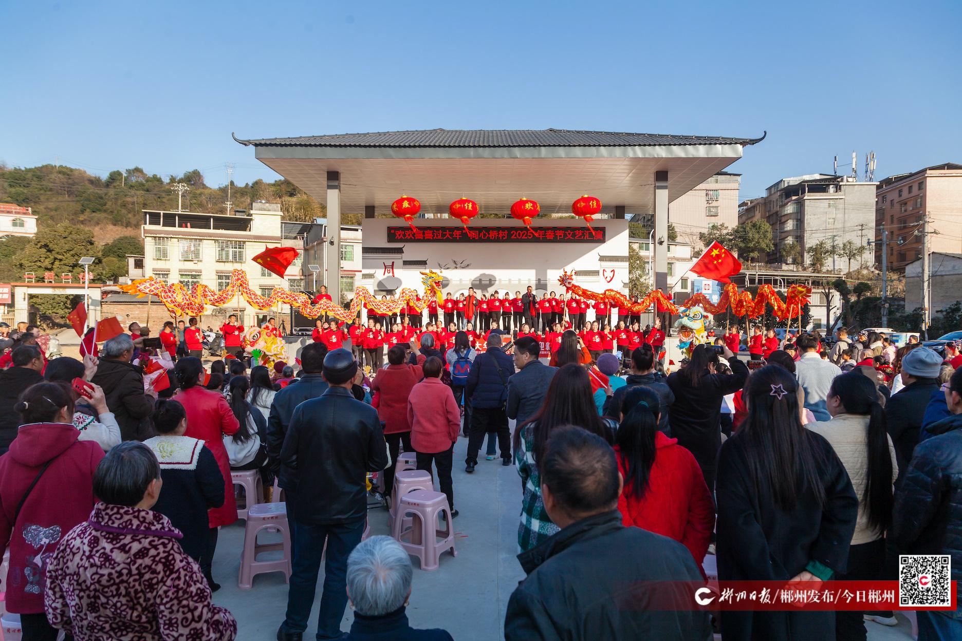 1月12日下午,隨著舞龍舞獅的隊(duì)伍入場,北湖區(qū)同心橋村2025年春節(jié)文藝匯演正式開始。