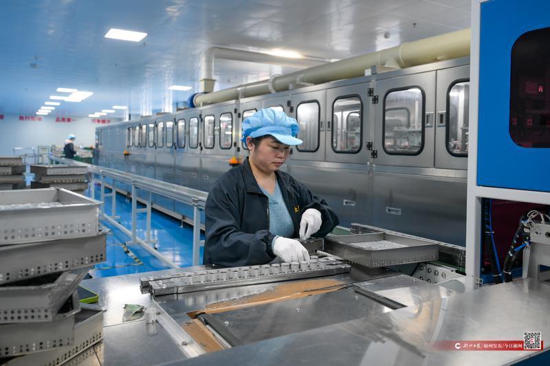 3月12日,在臨武縣高新區(qū)的湖南眾用電子有限公司生產(chǎn)車間內(nèi),工人正在生產(chǎn)制造電解電容器引線(導(dǎo)針)。該公司為國(guó)家級(jí)高新技術(shù)企業(yè),現(xiàn)有100多套全自動(dòng)生產(chǎn)線,含全自動(dòng)清洗設(shè)備和全自動(dòng)化生產(chǎn)設(shè)備,專注于電解電容器引線(導(dǎo)針)生產(chǎn)制造,導(dǎo)針產(chǎn)能排名位于世界前列。
