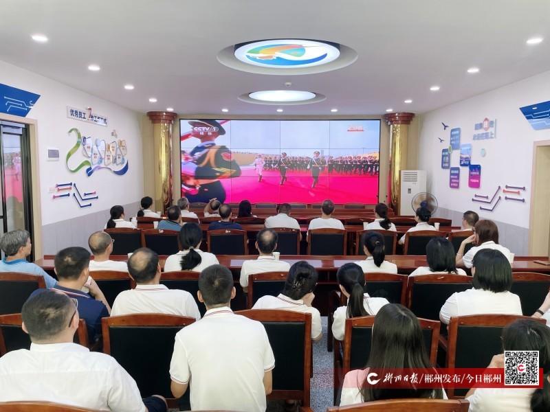 在安仁縣行政中心一樓會議室,安仁縣副處級以上在職領導干部及離退休干部、各單位主要負責人集體收看大會直播,認真聆聽習近平總書記重要講話。當受閱部隊以鏗鏘步伐通過天安門,一系列新型武器裝備莊嚴亮相,會場不時響起熱烈掌聲,許多人臉上寫滿激動與自豪。