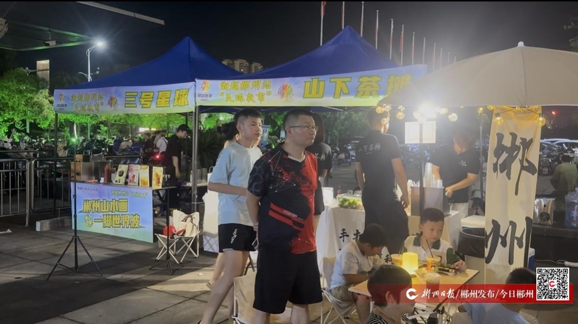 郴州國(guó)際會(huì)展中心北廣場(chǎng)上,21個(gè)美食攤位飄著香氣,炸串、燒烤、鹵味、咖啡、奶茶、啤酒、漢堡一應(yīng)俱全。廣場(chǎng)正中心的巨型屏幕在直播比賽,百名球迷齊聚共享足球盛宴。蘇仙區(qū)電商產(chǎn)業(yè)園總經(jīng)理李飛介紹,“郴品郴味足球夜市”匯聚三號(hào)星球、瘋狂燒烤、黃記牛雜等本地網(wǎng)紅商家,“借助體育賽事帶動(dòng)城東夜市經(jīng)濟(jì)”。
