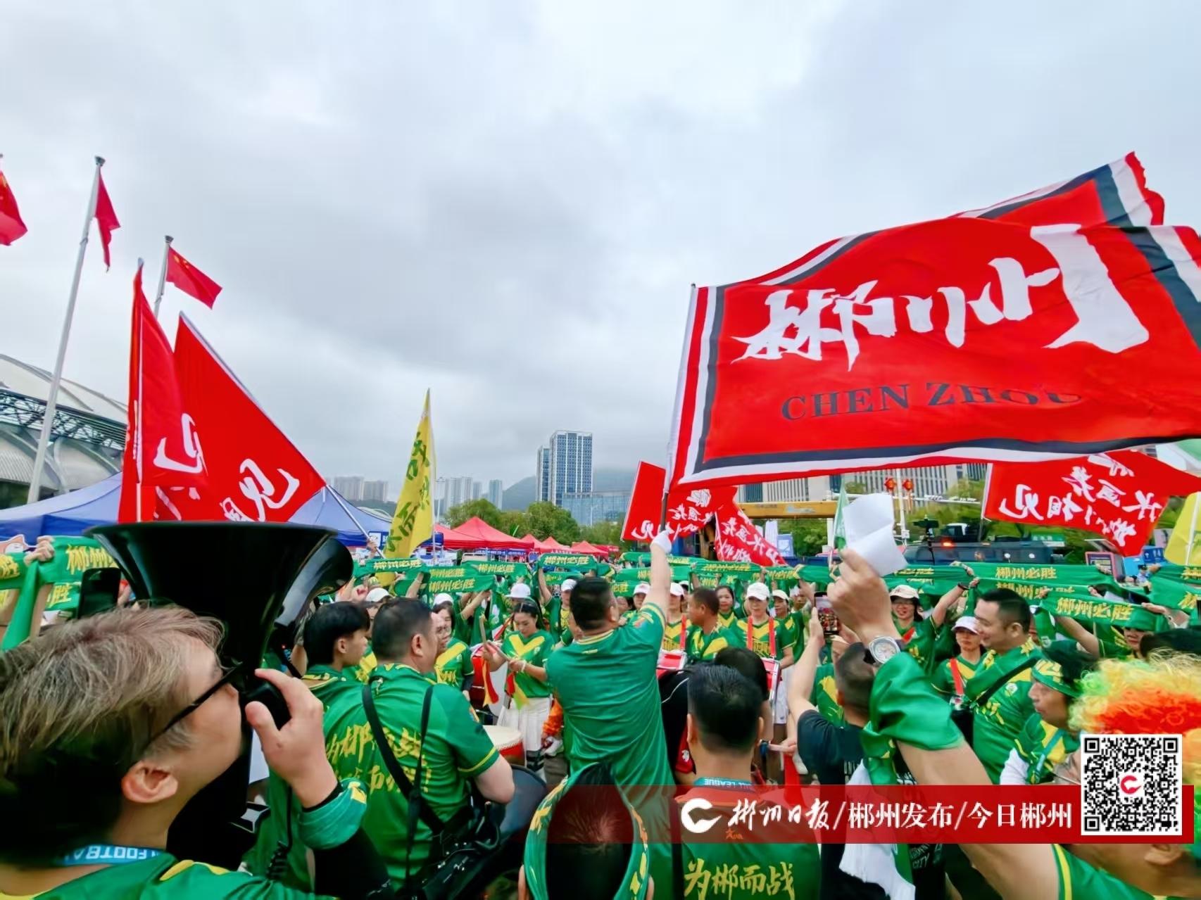 “郴州!必勝!”“家里有礦!不服來戰(zhàn)!”9月20日下午,細雨綿綿,天氣微涼,但郴州球迷熱情不減。數(shù)百名球迷身著綠色助威服,早早來到體育中心場外集結,揮舞著旗幟,齊聲為郴州隊助威。