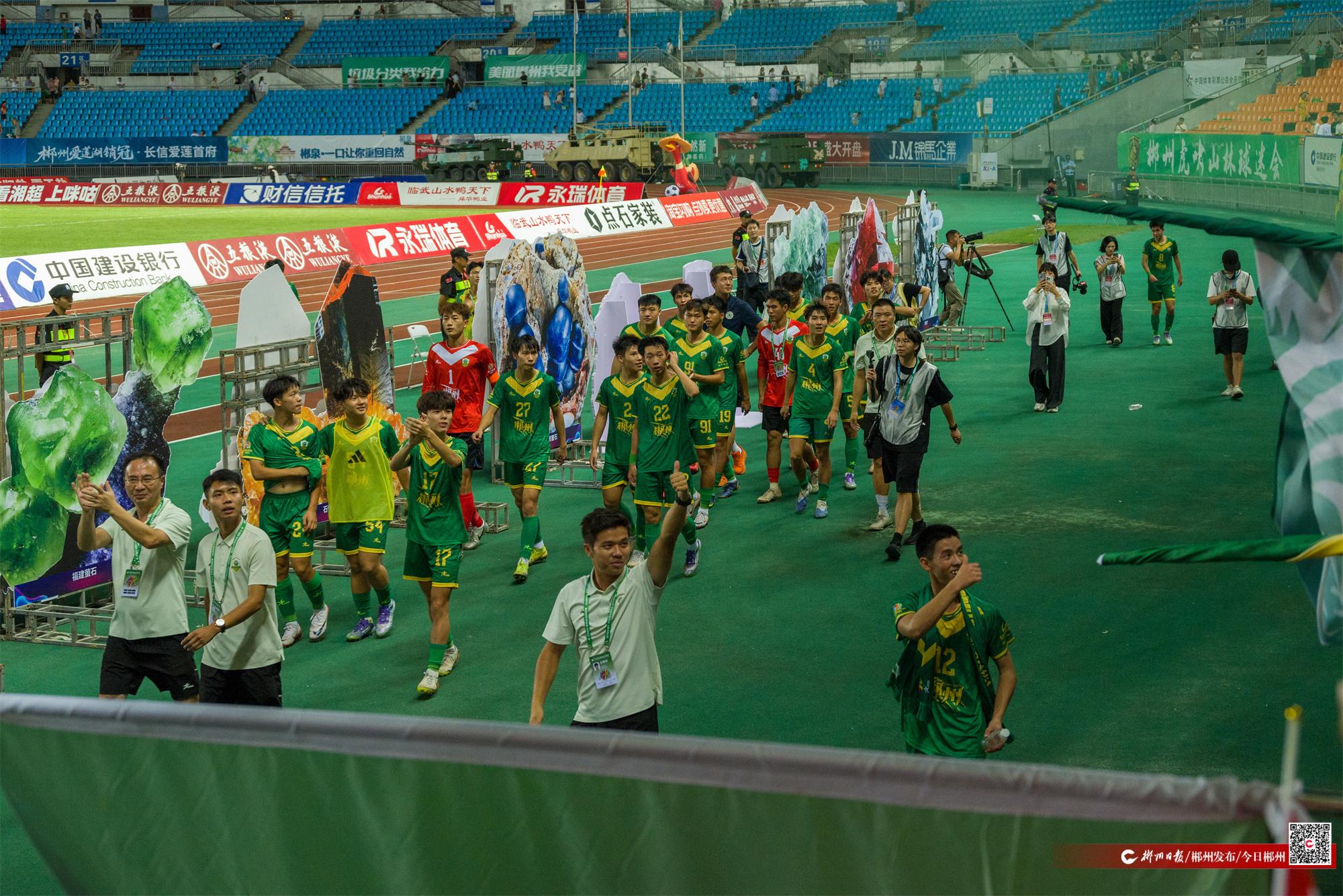 10月5日,“湘超”聯(lián)賽郴州隊(duì)主場(chǎng)與株洲隊(duì)1比1戰(zhàn)平。賽后,雙方全體隊(duì)員繞場(chǎng)至看臺(tái)邊向現(xiàn)場(chǎng)觀眾致謝。客隊(duì)行至主隊(duì)看臺(tái)時(shí),主隊(duì)球迷高喊“株洲你好”“感謝株洲”。主隊(duì)行至客隊(duì)看臺(tái)時(shí),株洲助威團(tuán)也熱情回應(yīng)“郴州加油”。場(chǎng)上握手言和,場(chǎng)下友好互動(dòng),展現(xiàn)了足球賽場(chǎng)超越勝負(fù)的體育精神。