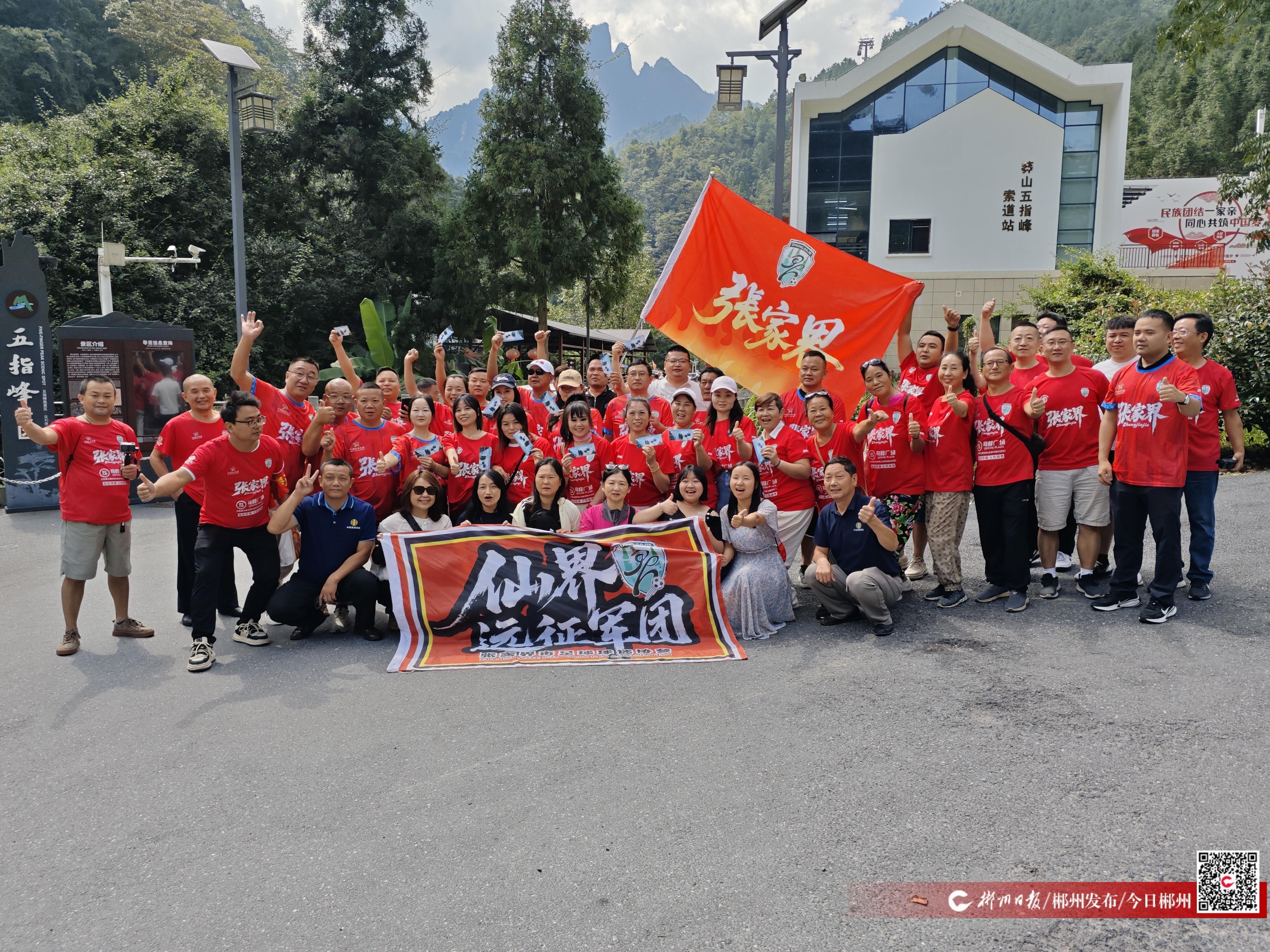 足球賽場上的競爭剛剛落幕,山水之間的情誼就此開啟。10月11日,“湘超”第五輪焦點戰(zhàn)中,郴州隊主場對陣張家界隊。10月12日,40余名張家界“湘超”助威團成員應(yīng)邀游覽郴州莽山旅游區(qū),實現(xiàn)了“以球會友”的賽場外約定。
