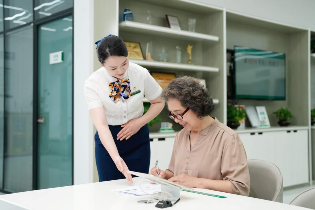 柜面服務(wù)人員為老年客戶(hù)辦理業(yè)務(wù)