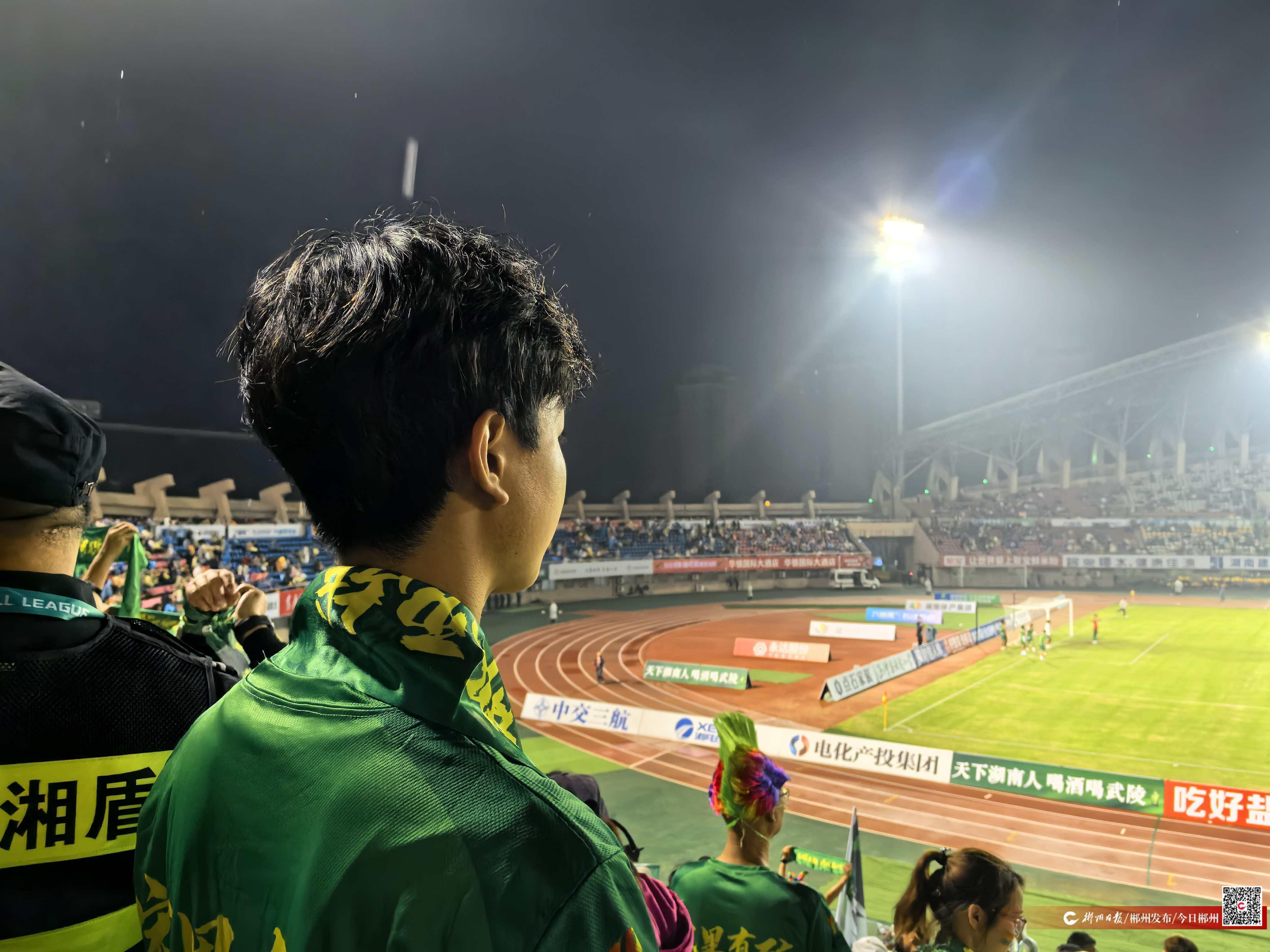 11月1日晚7時許,“湘超”郴州隊客場對戰(zhàn)湘潭隊的比賽即將開始,郴州隊的球迷封鈞耀站在綠茵場邊的人群中向前眺望,期盼著看到場上朋友的身影——這一晚,郴州隊的球員中,就有與他從小相識、一同踢球的朋友。