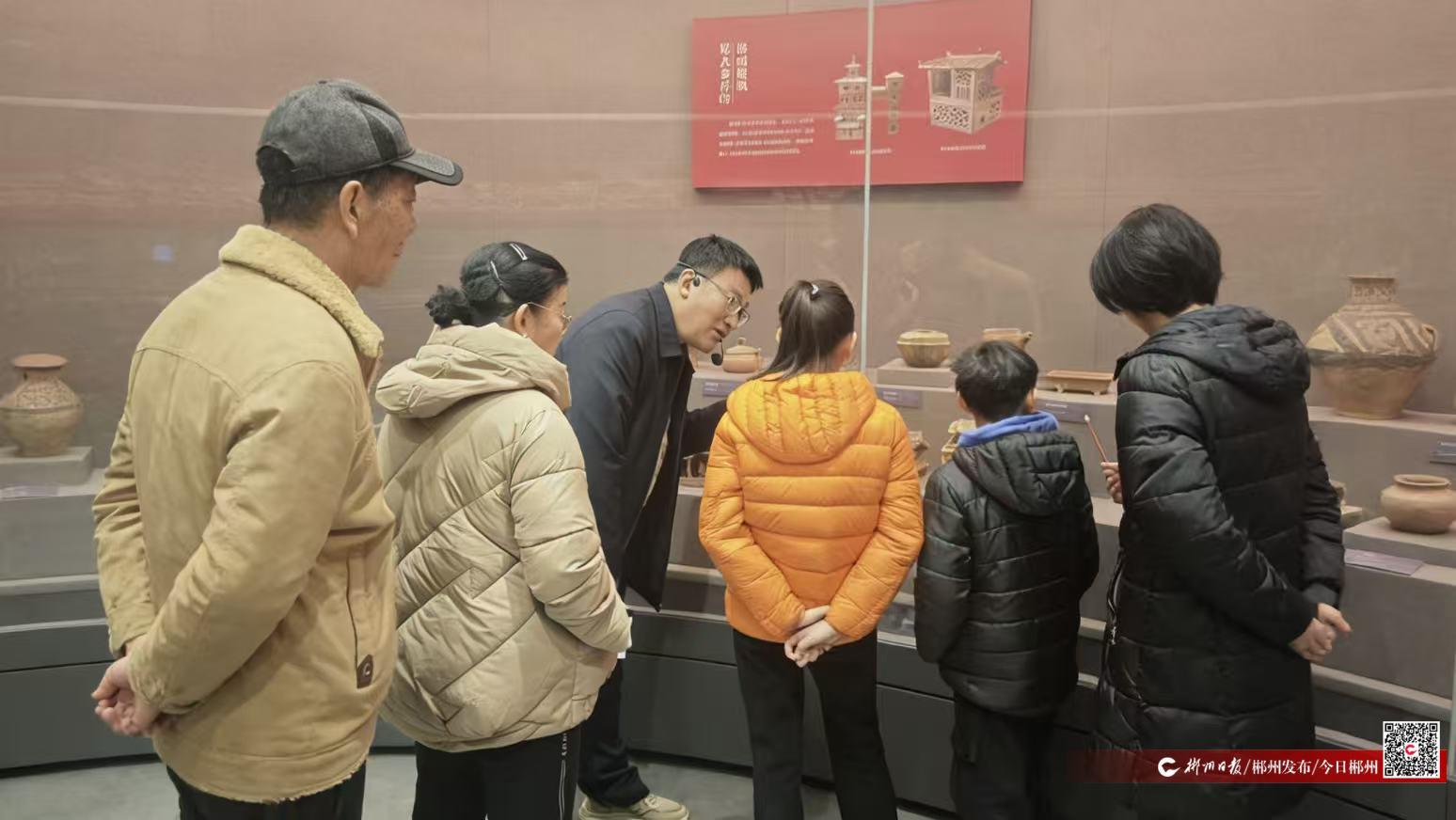 為了給觀眾提供更深度的文化體驗,博物館在新春公益講解服務上也做足了功夫。今年新春的首批公益講解,由該館館長、副研究館員鄭延慶擔任專家講解員。他以專業(yè)的視角和通俗易懂的語言,為多地游客生動講述了文物背后的故事與郴州千年歷史,讓觀眾近距離觸摸城市文脈。