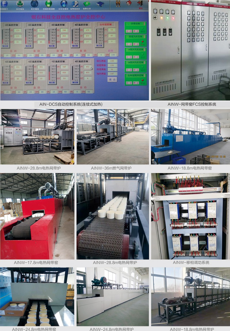 屬于連續性窯爐,傳動方式為金屬網帶,金屬網帶由托輥或托板承載,主要用于陶瓷玻璃烤花、玻璃熱彎成型、玻璃退火、催化劑再生、粉體材料的干燥、焙燒。按加熱方式可分為燃氣網帶窯和電熱網帶窯兩類。網帶根據溫度選用不同材質的不銹鋼材料,受金屬材質所限,一般網帶窯使用溫度≤1050℃。主要適用于特種陶瓷、結構陶瓷、電子陶瓷、功能陶瓷、磁性材料、電子粉體、電子器件、蜂窩陶瓷等領域,具有質量穩定可靠,爐溫均勻,得到客戶認可,特別是節約能源做了大量工作。