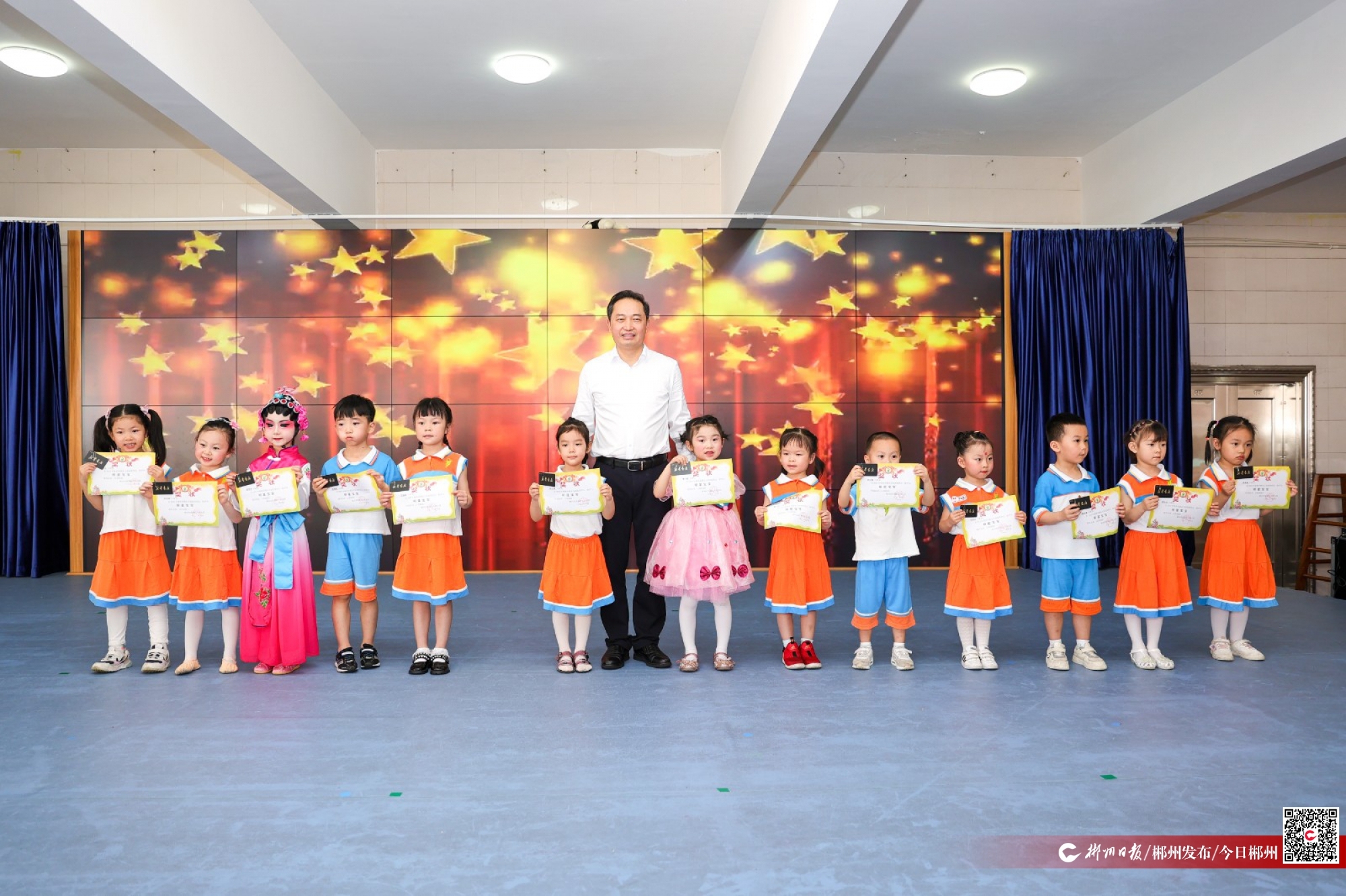 來(lái)到市直機(jī)關(guān)幼兒園,走廊里,孩子和家長(zhǎng)共同創(chuàng)作的藝術(shù)作品構(gòu)思巧妙,形式多樣,吸引大家駐足觀賞、點(diǎn)贊;舞臺(tái)上,可愛(ài)的孩子們愉快地唱歌、跳舞,天真的笑容、稚嫩的歌聲,感染了在場(chǎng)的每一個(gè)人,盡情享受節(jié)日的歡樂(lè)。吳巨培走上舞臺(tái),為幼兒園的“明星寶寶”們頒發(fā)榮譽(yù)證書(shū),熱情地向孩子們問(wèn)好,祝福他們健康茁壯成長(zhǎng)。