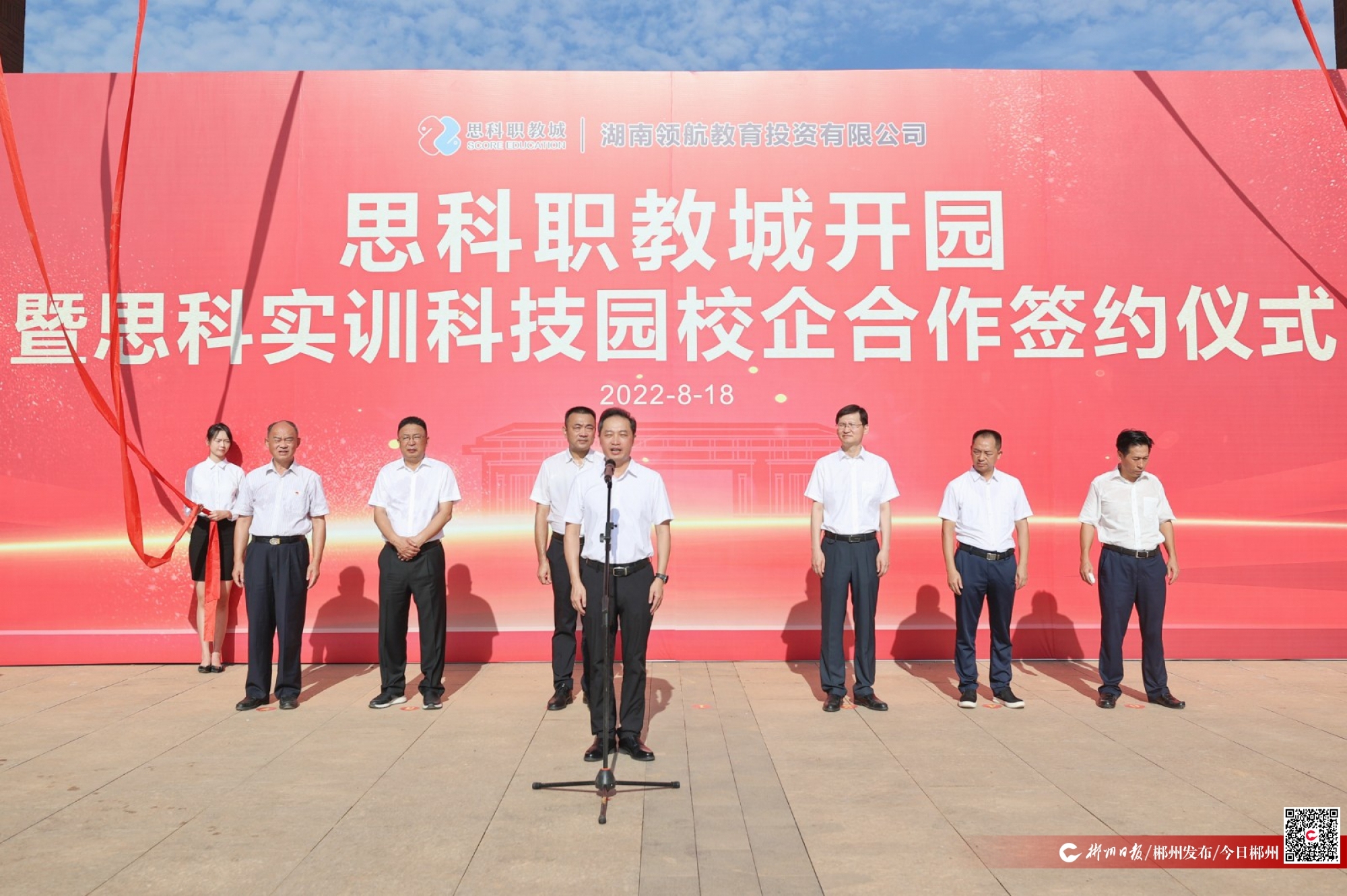 市領(lǐng)導黃進良、陳榮偉、周海林,湖南領(lǐng)航教育投資有限公司董事長瞿啟云,郴州思科職教城總校校長劉國生出席活動。