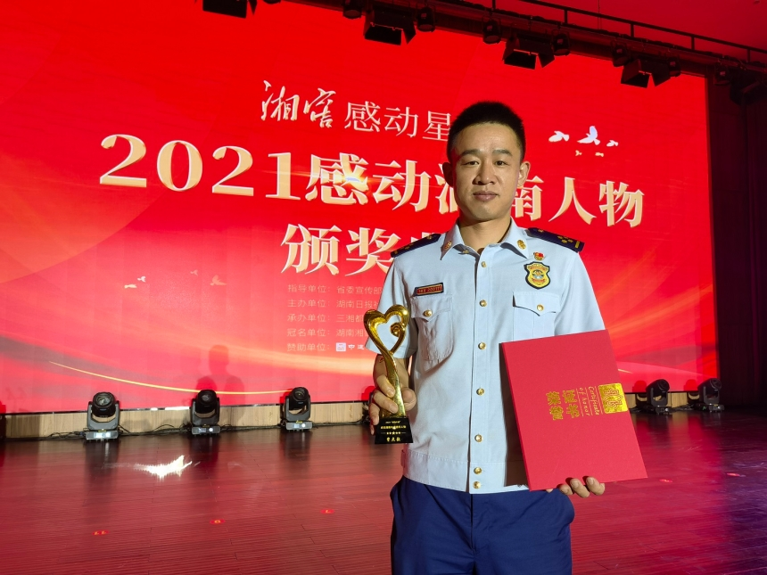 2021年10月,“感動(dòng)湖南”人物評(píng)選活動(dòng)啟動(dòng)。經(jīng)綜合網(wǎng)絡(luò)投票及“感動(dòng)湖南”推選委員會(huì)評(píng)委打分,產(chǎn)生“感動(dòng)湖南”年度致敬人物1名、“感動(dòng)湖南”十佳人物10名、“感動(dòng)湖南”年度榜樣人物7名。郴州市消防救援支隊(duì)涌泉特勤站站長(zhǎng)曾杰毅當(dāng)選2021“感動(dòng)湖南”年度榜樣人物。