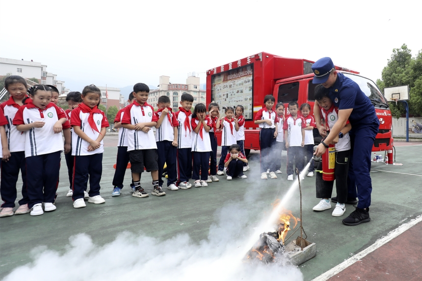 注重模擬演練,加強體驗教育。支隊緊扣趣味性教學、實踐性教育理念,開展消防車和宣傳車“進校園”消防宣傳體驗活動,向?qū)W校師生展示消防器材裝備,通過火災報警、水槍出水、油盆滅火、疏散逃生等200余場模擬演練,幫助師生在實踐中增長技能。通過“大家來找茬”游戲體驗活動教授識別火災隱患的方法,并在實踐體驗中引導學生查找校園中存在的消防安全隱患,共同為校園消防安全“體檢”。