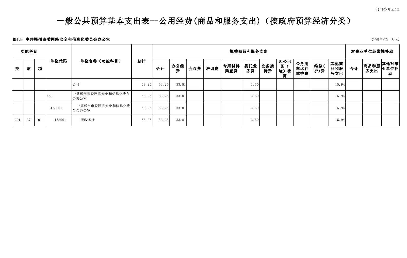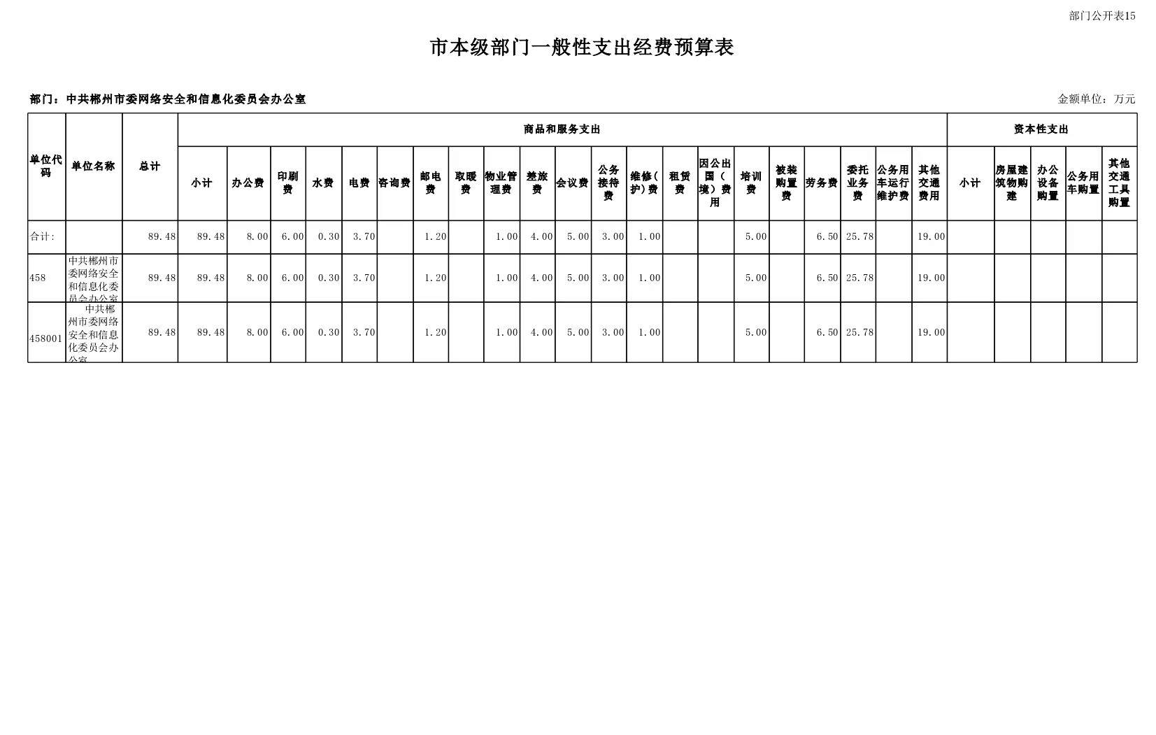 2023年中共郴州市委網(wǎng)絡(luò)安全和信息化委員會辦公室部門預(yù)算