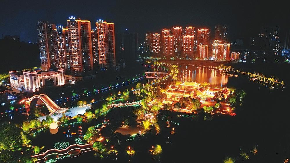 愛蓮湖夜色惹人醉 (全媒體記者 鄧智華 攝)