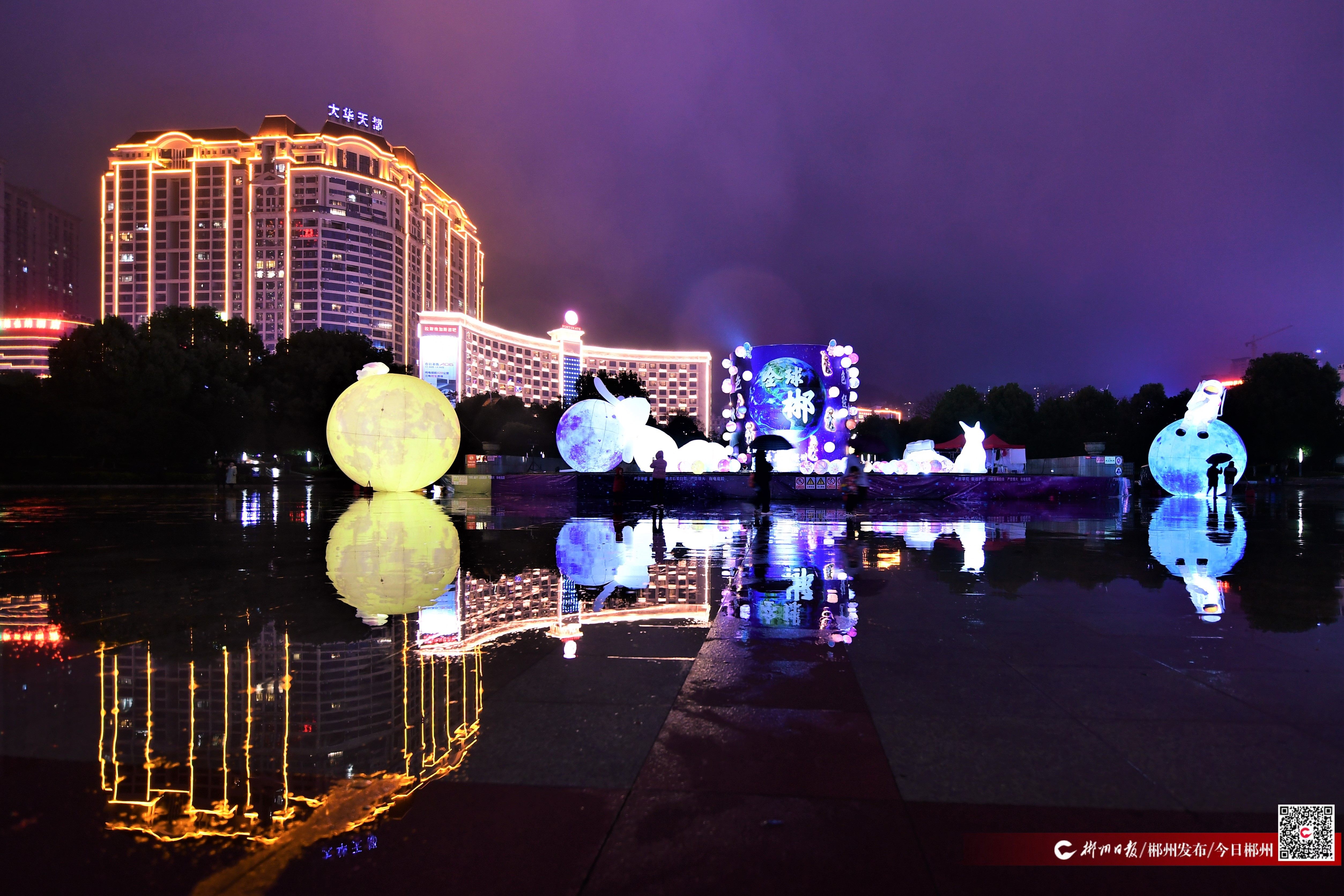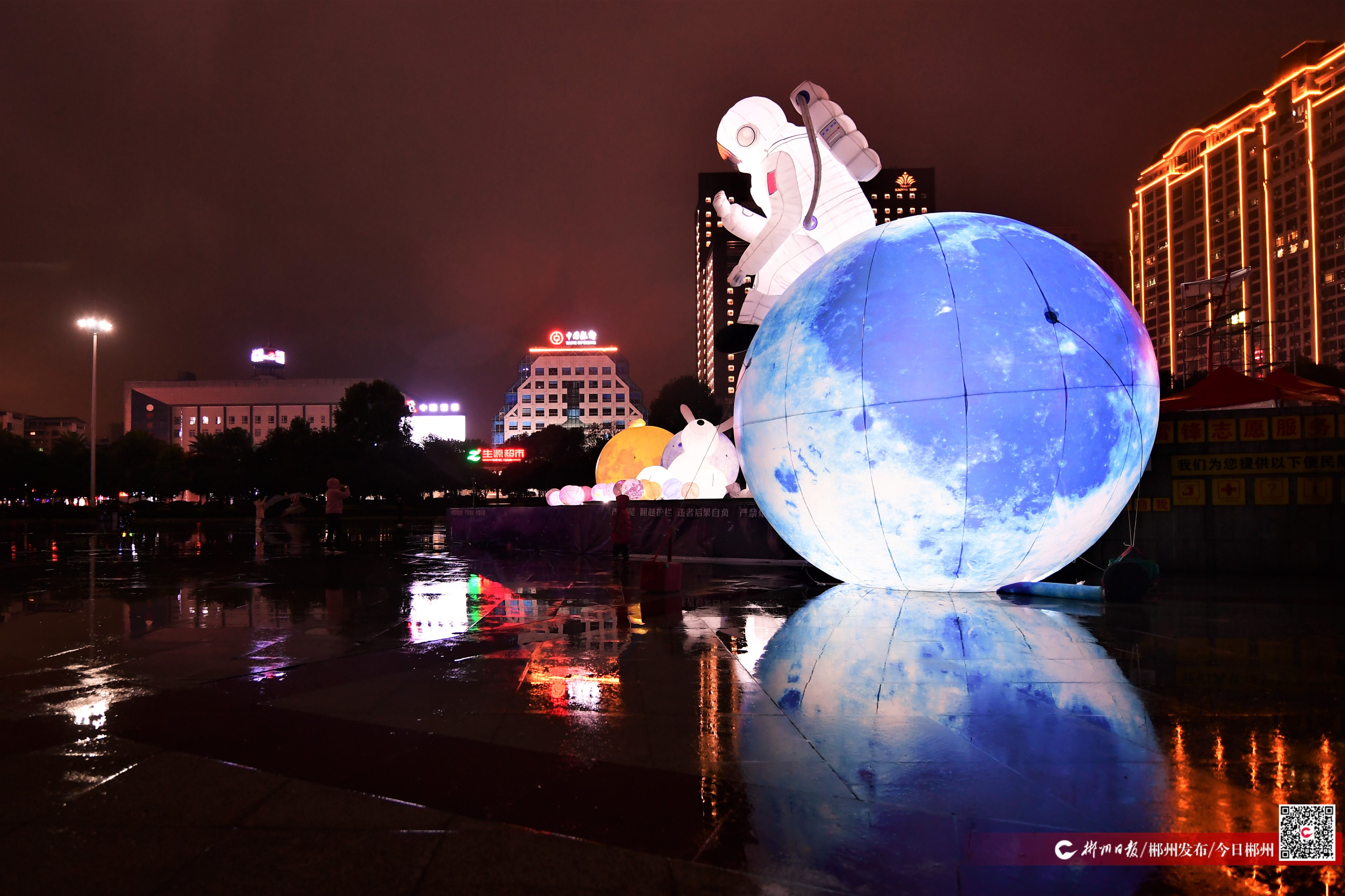 2月9日晚,“全球郴”“走遍五大洲 最美有郴州”……一組極具科幻色彩的星球、生肖兔巨型“發(fā)光體”在五嶺廣場(chǎng)驚艷亮相,吸引了眾多市民拍照打卡。