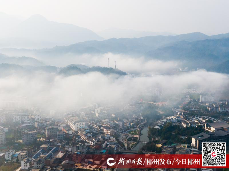 2月18日,汝城縣熱水鎮(zhèn)出現(xiàn)平流霧,村莊、河流、農(nóng)田、群山在晨霧中若隱若現(xiàn),宛若人間仙境。