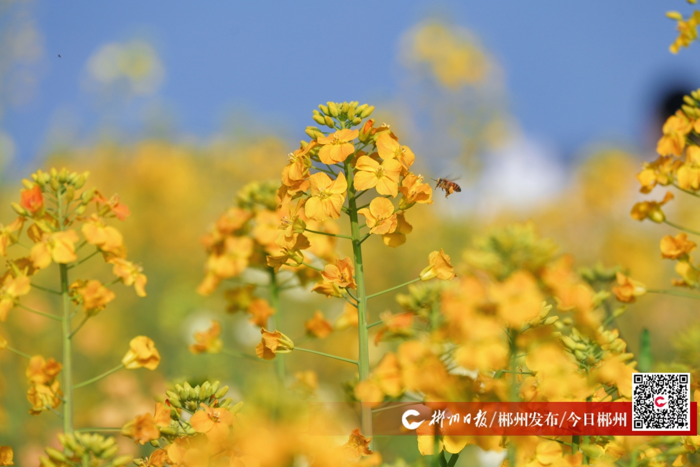 油菜花兒開,金黃鋪滿地。3月4日,在蘇仙區(qū)棲鳳渡鎮(zhèn)村頭村,1200畝連片油菜花開始進入盛花期。