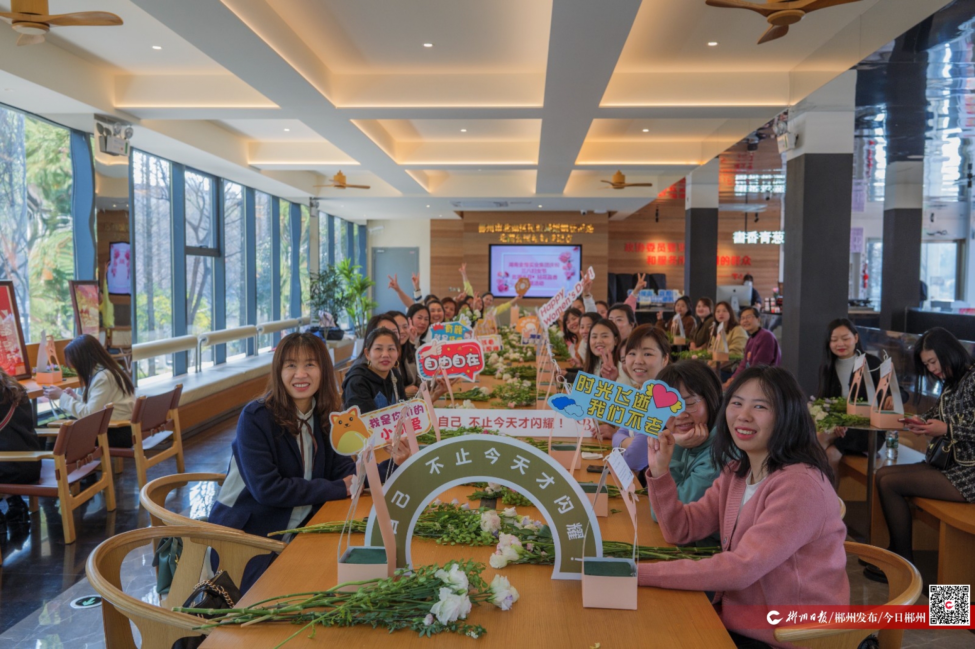陽春三月,春暖花開,萬物萌生。3月6日上午,北湖公園水月州“書香青蔥屋”里,湖南金煌實業(yè)集團黨委為助力郴州旅發(fā)大會、慶?!叭恕眹H婦女節(jié)舉行的“北湖水月·拈花品香”主題活動正在進行。