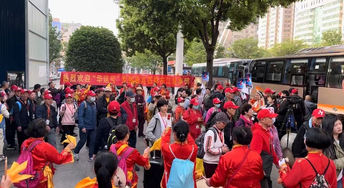 7時48分,由杭州始發(fā)的“華運號”千人專列抵達郴州站。在喜慶的鑼鼓聲中,首批來自上海、浙江、江蘇、安徽等地的700余名游客,帶著對郴州的無限憧憬走出車站,等待他們的將是一場醉心的人文山水之旅。