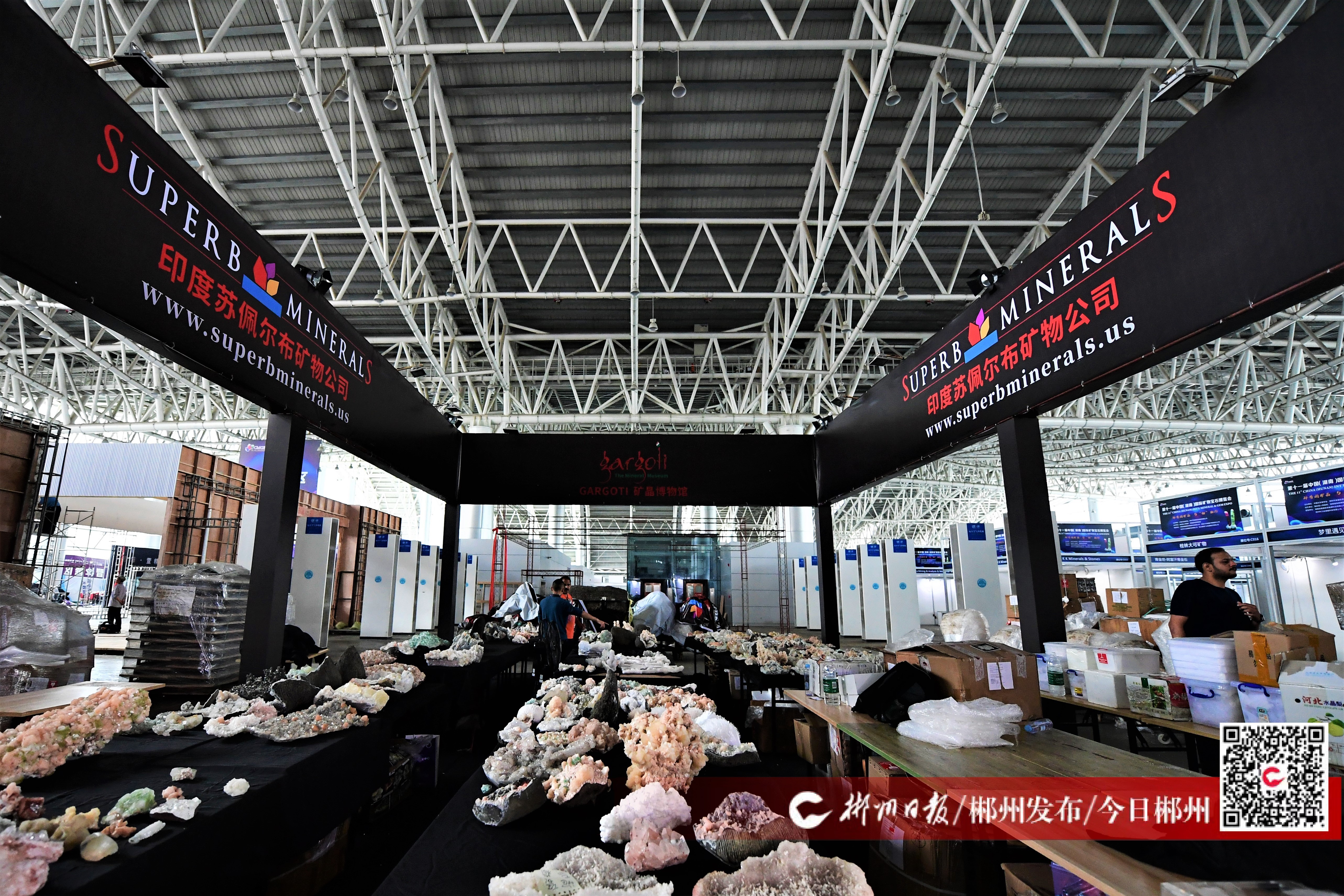5月16日,郴州國際會展中心工作人員正在有條不紊地進行第十一屆中國(湖南)國際礦物寶石博覽會展位的搭建施工,各項籌備工作進入了倒計時沖刺階段。此次展會面積約6萬平方米,共設(shè)1200個國際標(biāo)準(zhǔn)展位,47個特裝展位。