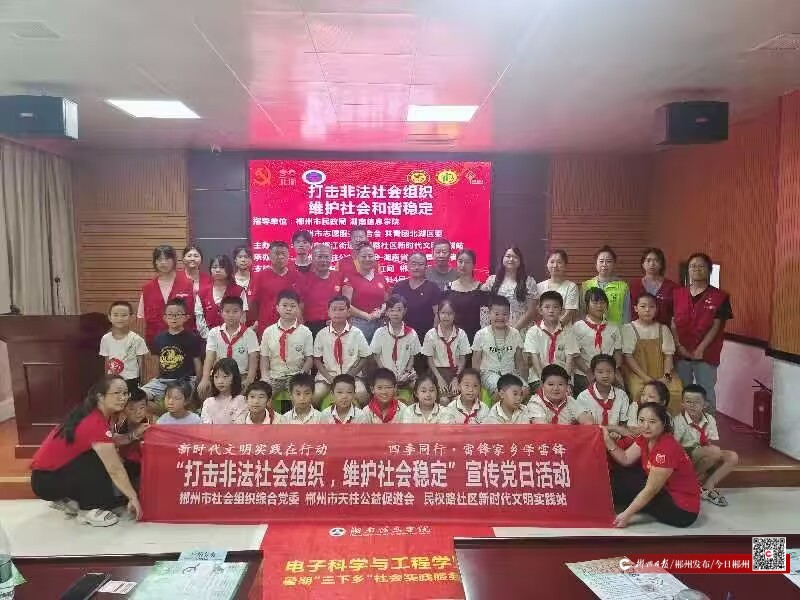 7月14日,郴州市天柱公益促進(jìn)會(huì)在市民政局的指導(dǎo)下,攜手湖南信息學(xué)院登豐團(tuán)隊(duì)來到北湖區(qū)郴江街道民權(quán)路社區(qū),開展“打擊非法社會(huì)組織、維護(hù)社會(huì)穩(wěn)定”宣傳活動(dòng)。
