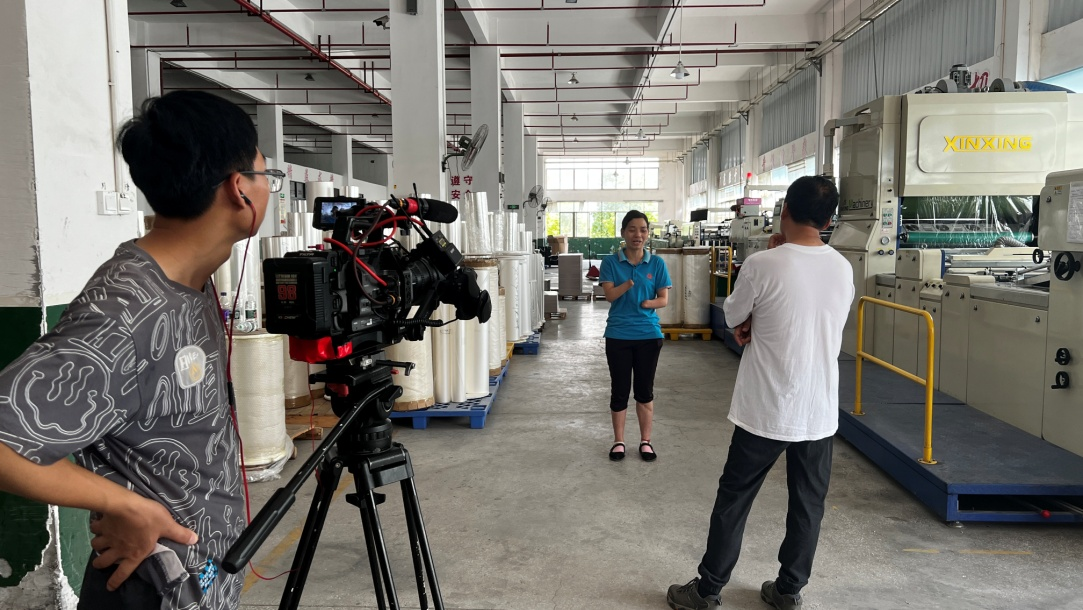 ▲編導(dǎo)在百捷利包裝印刷有限公司車(chē)間采訪(fǎng)