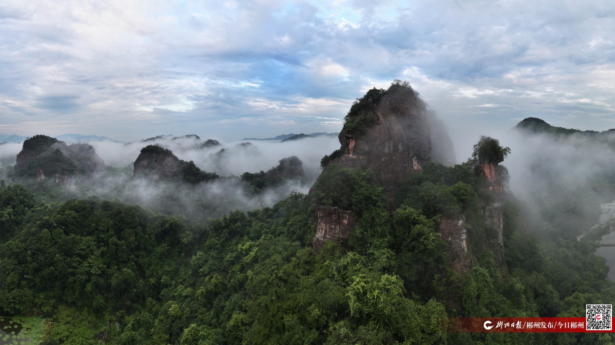 8月22日,飛天山國(guó)家地質(zhì)公園清晨的鐵鼎寨風(fēng)景如畫。園內(nèi)鐵鼎寨、神仙寨、瓦窯坪等景點(diǎn)紅巖綠水,赤壁丹霞,峽谷奇洞,組成了“四面青山列翠屏”“草木花光盡是香”的奇異丹霞地貌景觀。日前,郴州為多云晴好的天氣,晨曦中的飛天山風(fēng)景迷人,航拍下的鐵鼎寨山水秀美,山石雄偉,晨霧飄渺宛如仙境,旖旎風(fēng)光,美不勝收。