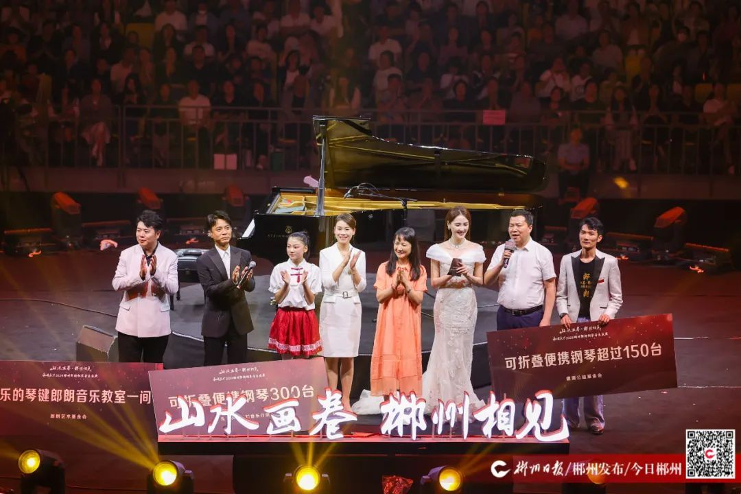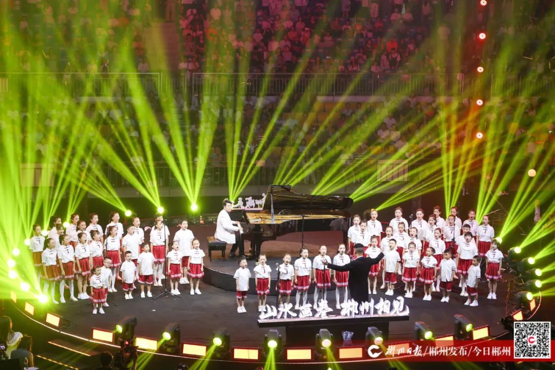 音樂盛典上,郎朗還分別與來自郴州的100名琴童及部分青年鋼琴教師和安仁米多多合唱團(tuán)共同演繹膾炙人口的鋼琴曲《少年》及《我和我的祖國》,少年壯志與愛國之情在音樂中涓涓流淌。