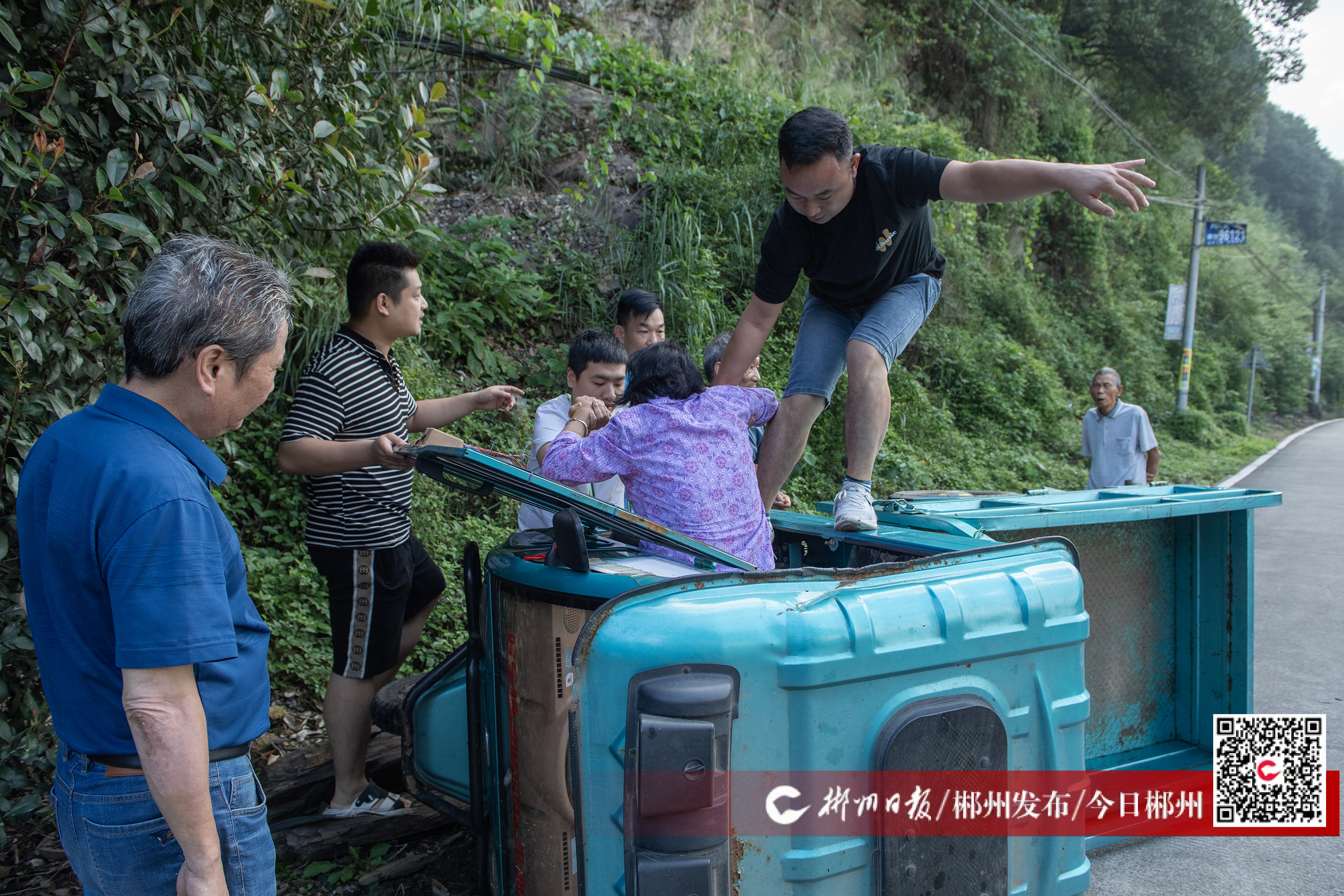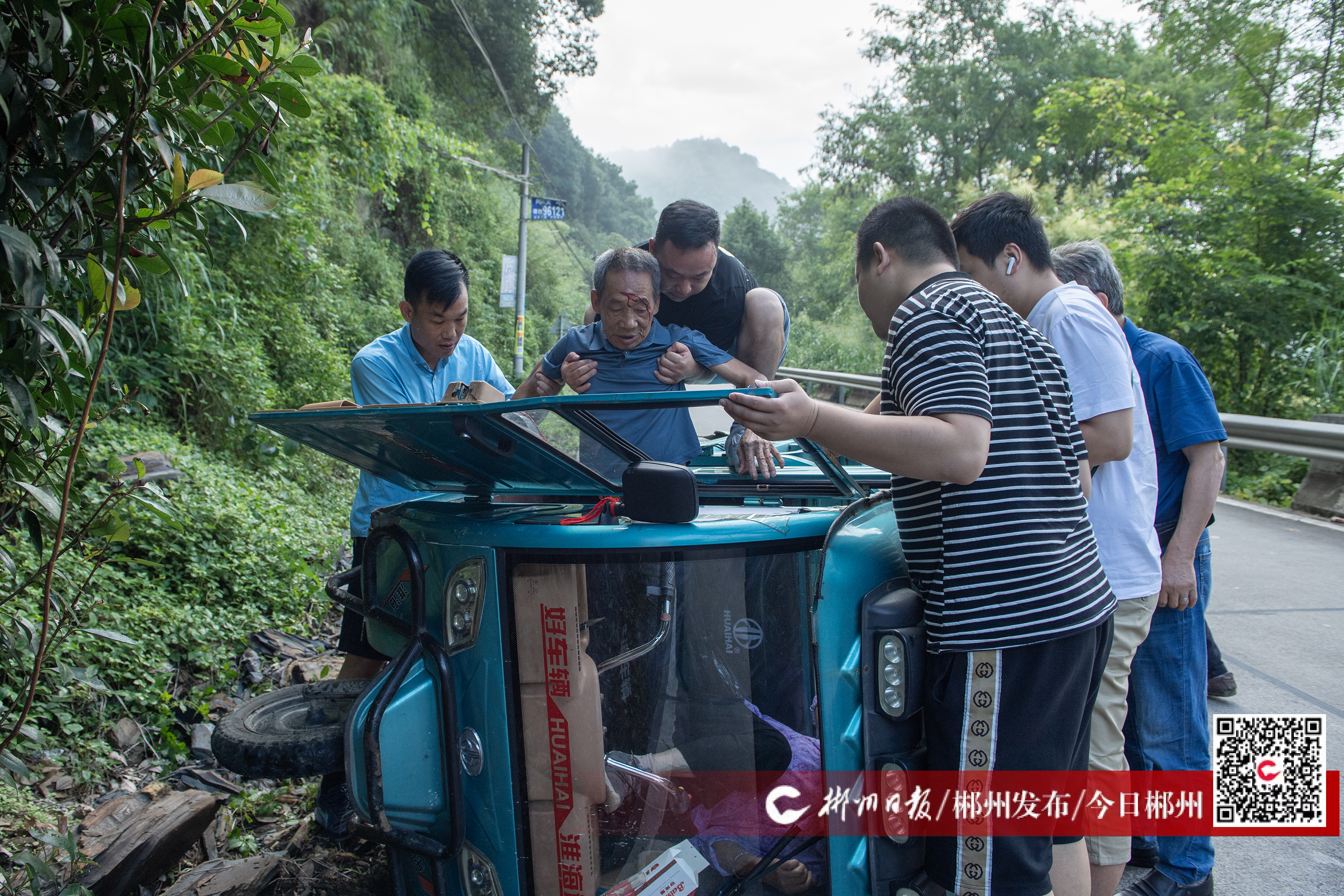 小車(chē)司機(jī)立馬將車(chē)靠邊停下。車(chē)上機(jī)關(guān)工作人員侯永剛、劉春陽(yáng)、曾元方、許江晨、肖明軒等人迅速下車(chē)對(duì)電動(dòng)車(chē)進(jìn)行施救。他們齊心協(xié)力將車(chē)門(mén)撬開(kāi),將兩位老人從車(chē)?yán)镆灰痪瘸?。?jù)悉,這兩位老人是便江街道杉橋村村民,系夫妻。所幸只是受了點(diǎn)皮外傷,并無(wú)大礙。