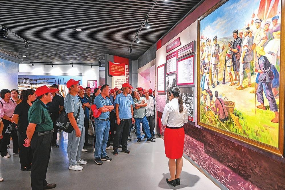 ▲游客在“半條被子的溫暖”專題陳列館參觀,追尋紅色足跡,聆聽革命故事
