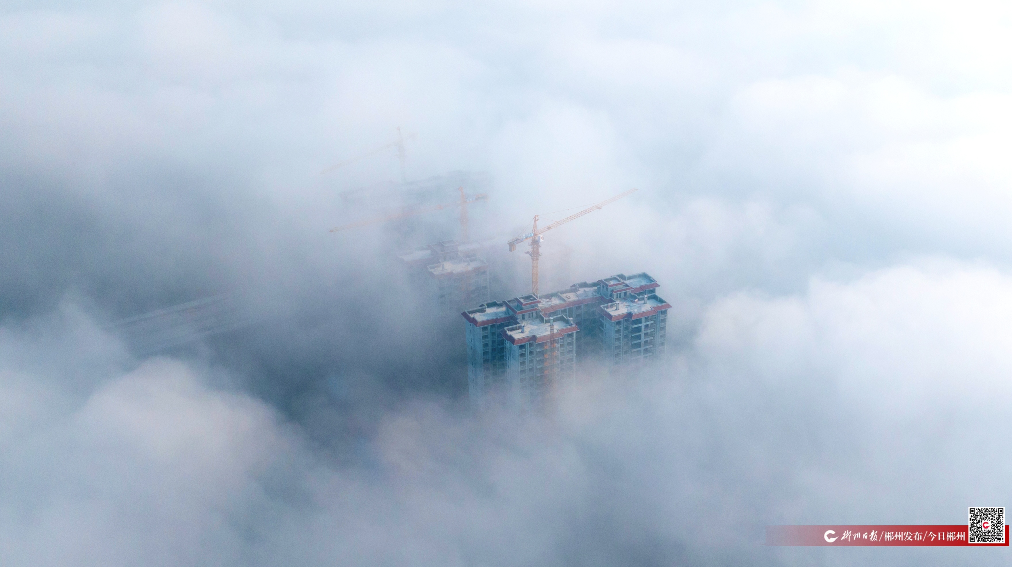 10月31日清晨,我市資興、宜章等地出現(xiàn)平流霧景觀,城市、鄉(xiāng)村、田野、河流在云霧的環(huán)繞下若隱若現(xiàn),勾勒出一幅美麗的秋日畫卷。隨著朝陽的升起,平流霧似仙氣彌漫,在樓宇間漫舞流淌,如絲帶般輕柔拂過,如夢如幻,宛若仙境,云霧與城市交疊在一起,仿若一座“天空之城”。
