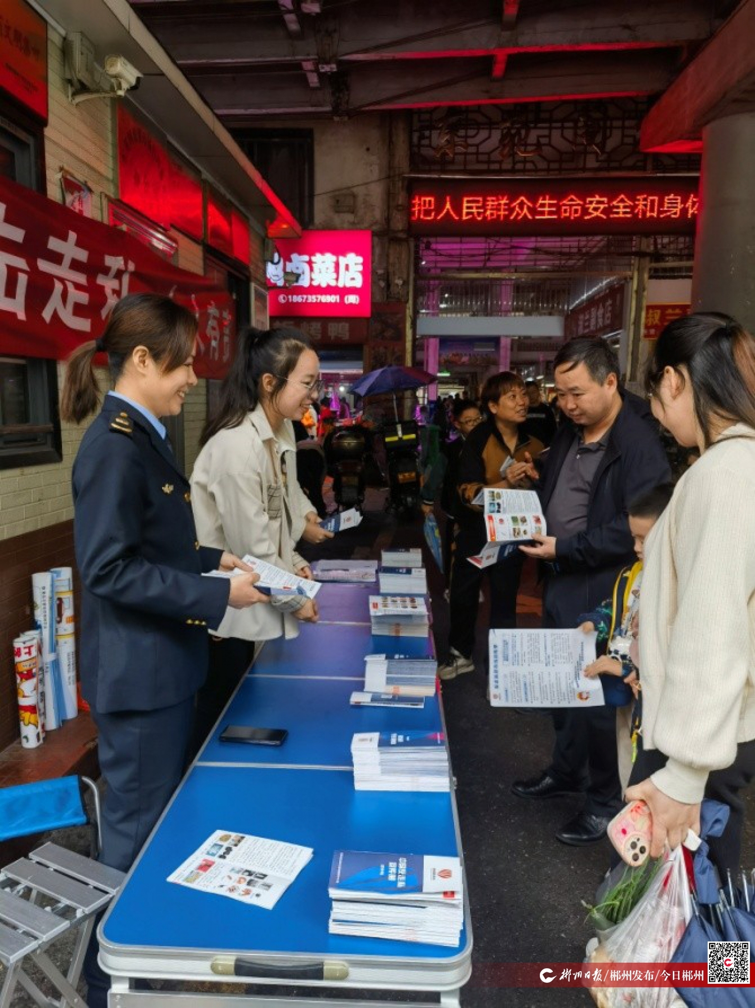 工作人員走進農貿市場,向居民和商戶科普走私行為的危害和相關法律法規(guī)