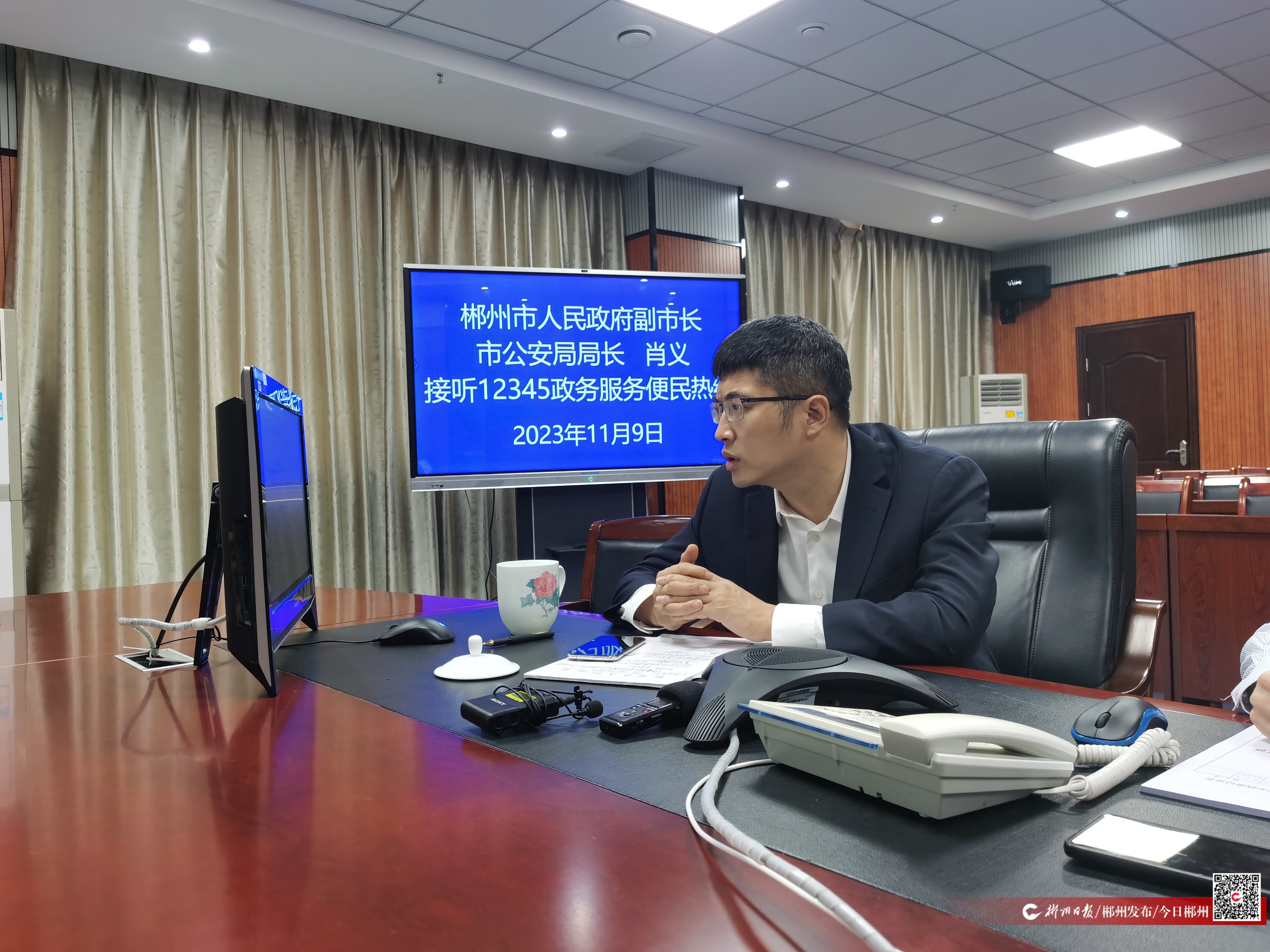 “您好,我是肖義,感謝您的來電,請問有什么能幫到您?”11月9日9時(shí)許,副市長、市公安局局長肖義來到市長公開電話辦公室接聽12345政務(wù)服務(wù)便民熱線,現(xiàn)場受理群眾訴求。
