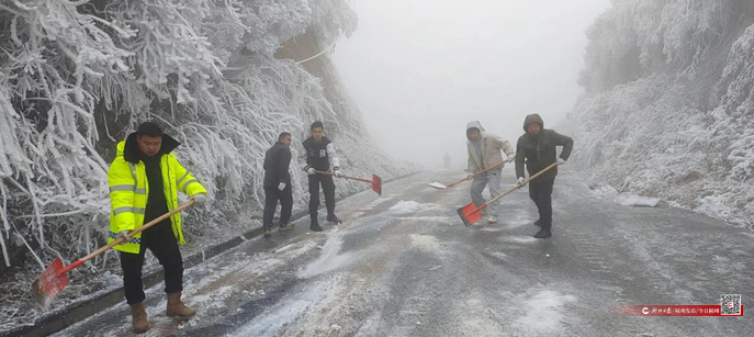 仰天湖瑤族鄉(xiāng)在天氣變化之初就迅速行動(dòng),“兩站兩員”全員上路,加強(qiáng)對(duì)重點(diǎn)路段、易發(fā)生交通事故的地點(diǎn)進(jìn)行巡查,不畏嚴(yán)寒,堅(jiān)守崗位,在結(jié)冰路段設(shè)置警示牌和路障。此外,還通過(guò)微信群,及時(shí)發(fā)布路況信息,提醒哪些路段不能通行,并在轄區(qū)進(jìn)行道路巡邏。該鄉(xiāng)黨委政府科學(xué)部署、履職盡責(zé),組織人員開(kāi)展道路清障清雪行動(dòng),他們拿上工具將路上的積雪鏟除,全力保障群眾出行安全。