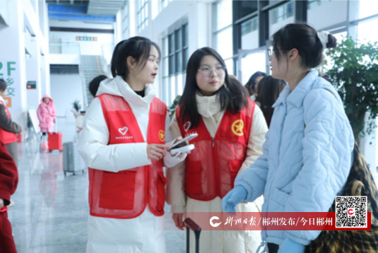 春節(jié)臨近,各大車站客流量陡增,郴州市青年志愿者聯(lián)合會暖冬行動春運志愿服務隊聯(lián)合北湖區(qū)青年志愿者協(xié)會組織20余名返鄉(xiāng)大學生在郴州汽車總站開展“青春志愿行 溫暖回家路”暖冬行動。