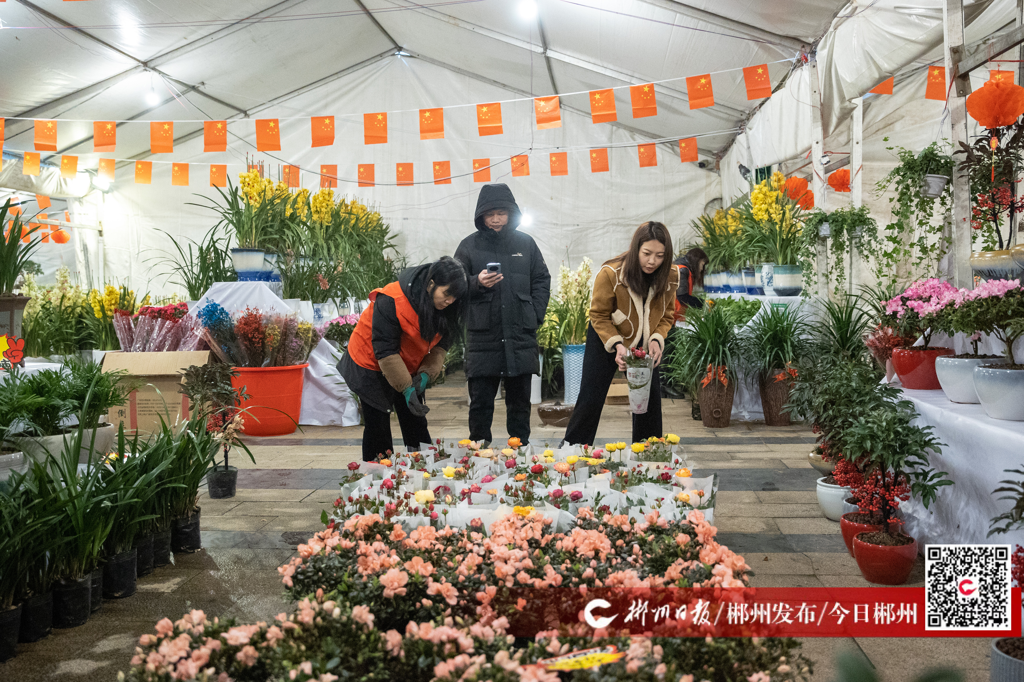 2月6日,在城區(qū)南湖路郴州市第二屆迎春花博覽會現(xiàn)場,前來選購花卉的顧客絡(luò)繹不絕。春節(jié)將至,我市花卉市場逐漸升溫,不少民眾選購各種鮮花、綠植來扮靚生活,迎接龍年春節(jié)。相關(guān)負責人介紹,此次迎春花博覽會共展出國內(nèi)外花卉品種100余個,蘋果樹、君子蘭、長壽花、富貴子、高山杜鵑等寓意吉祥的花卉,更是深受市民喜愛。