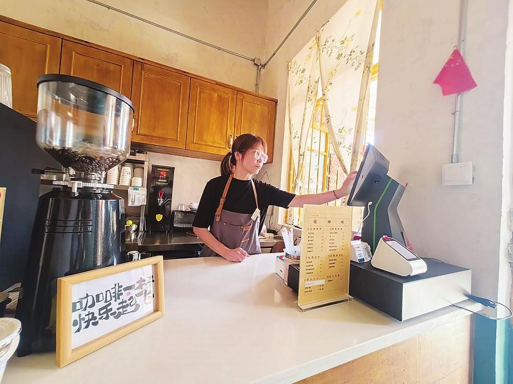 ▲在711時(shí)光小鎮(zhèn)核咖啡館上班的黃土珊