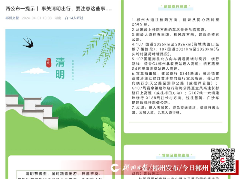 該縣通過LED屏、短信平臺、“交管12123”App、“雙微”等新媒體平臺,循環(huán)播放“兩公布一提示”和清明節(jié)出行交通安全提示。同時,張貼宣傳海報,擺放圖文并茂的宣傳展板,供群眾觀看、學(xué)習(xí),營造清明節(jié)期間安全出行、文明祭掃的氛圍,共同維護(hù)良好的道路秩序。