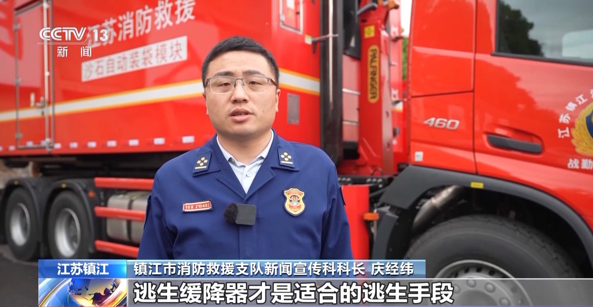 鎮(zhèn)江市消防救援支隊南徐大道特勤站消防員 張正昌:樓層越高風(fēng)力越大,我們就要防止在下降過程中人員被吹得四處甩動,容易撞擊到墻面或者障礙物,從而發(fā)生危險。逃生緩降器相對比逃生繩的使用門檻要低,但也具有一定風(fēng)險,需要加強(qiáng)日常的準(zhǔn)備和訓(xùn)練,我們建議10層以上的住戶還是要謹(jǐn)慎使用逃生緩降器。