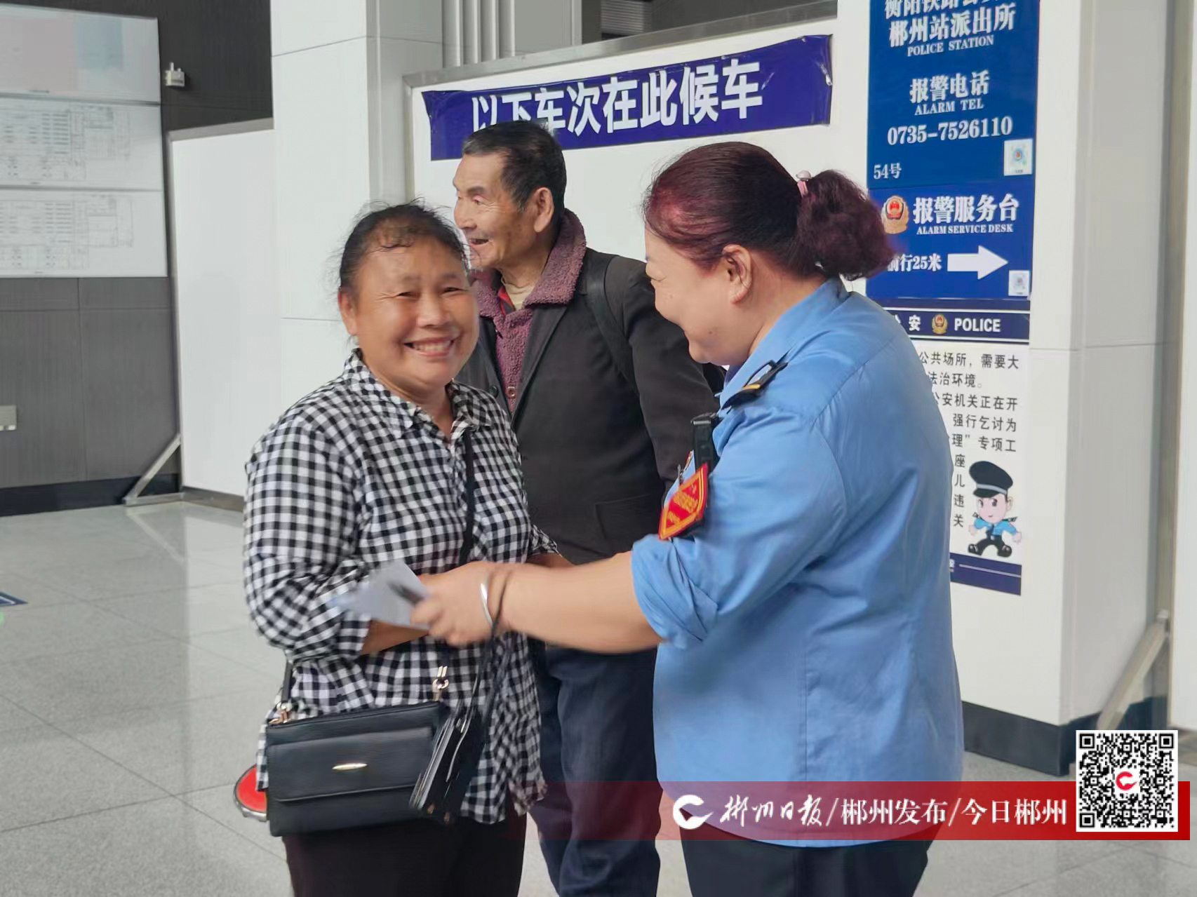 不久,老人的兒子和兒媳趕到郴州火車站將老人接走,并向車站及鐵路公安的工作人員連聲道謝,表示下次會細心看管好老人。